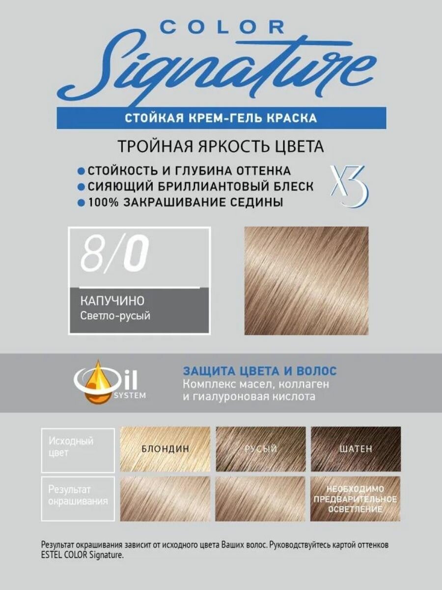 СохранитьESTEL Стойкая крем-гель краска для волос COLOR Signature, 8/0 капучино, 120 мл интересное: