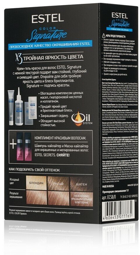 Ниже Вы можете прочитать отзывы на ESTEL Стойкая крем-гель краска для волос COLOR Signature, 8/0 капучино, 120 мл, ознакомится с подробными характеристиками, посмотреть интересные обзоры и фотографии на ESTEL Стойкая крем-гель краска для волос COLOR Signature, 8/0 капучино, 120 мл.