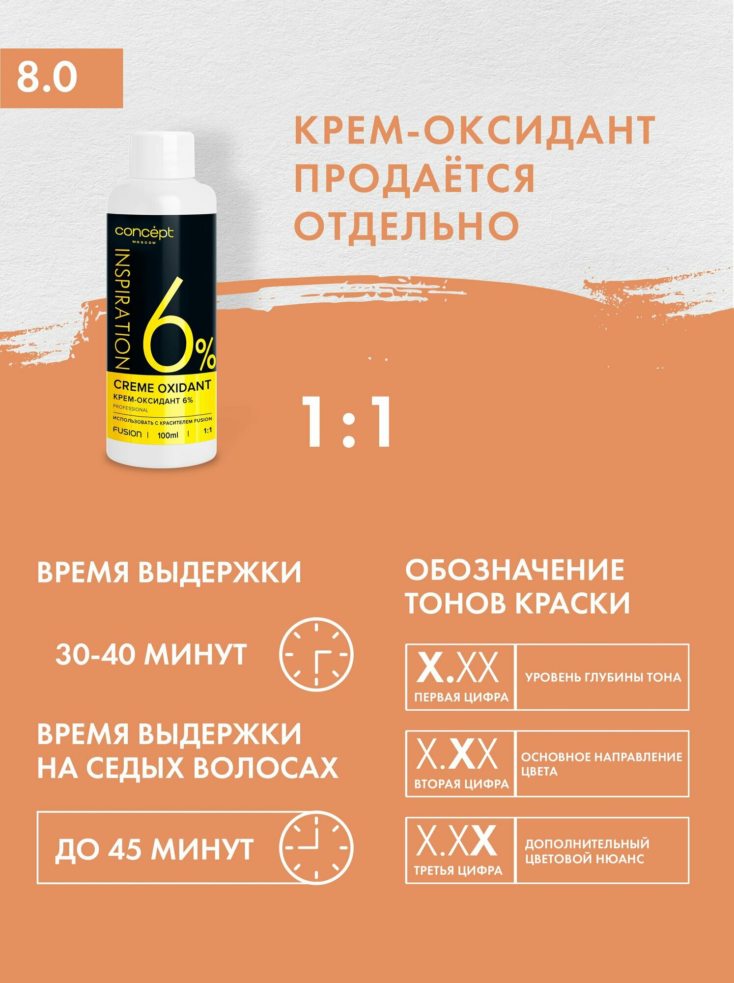 Краска для волос Concept "Fusion", тон 8.0, Темный блонд, 100 мл