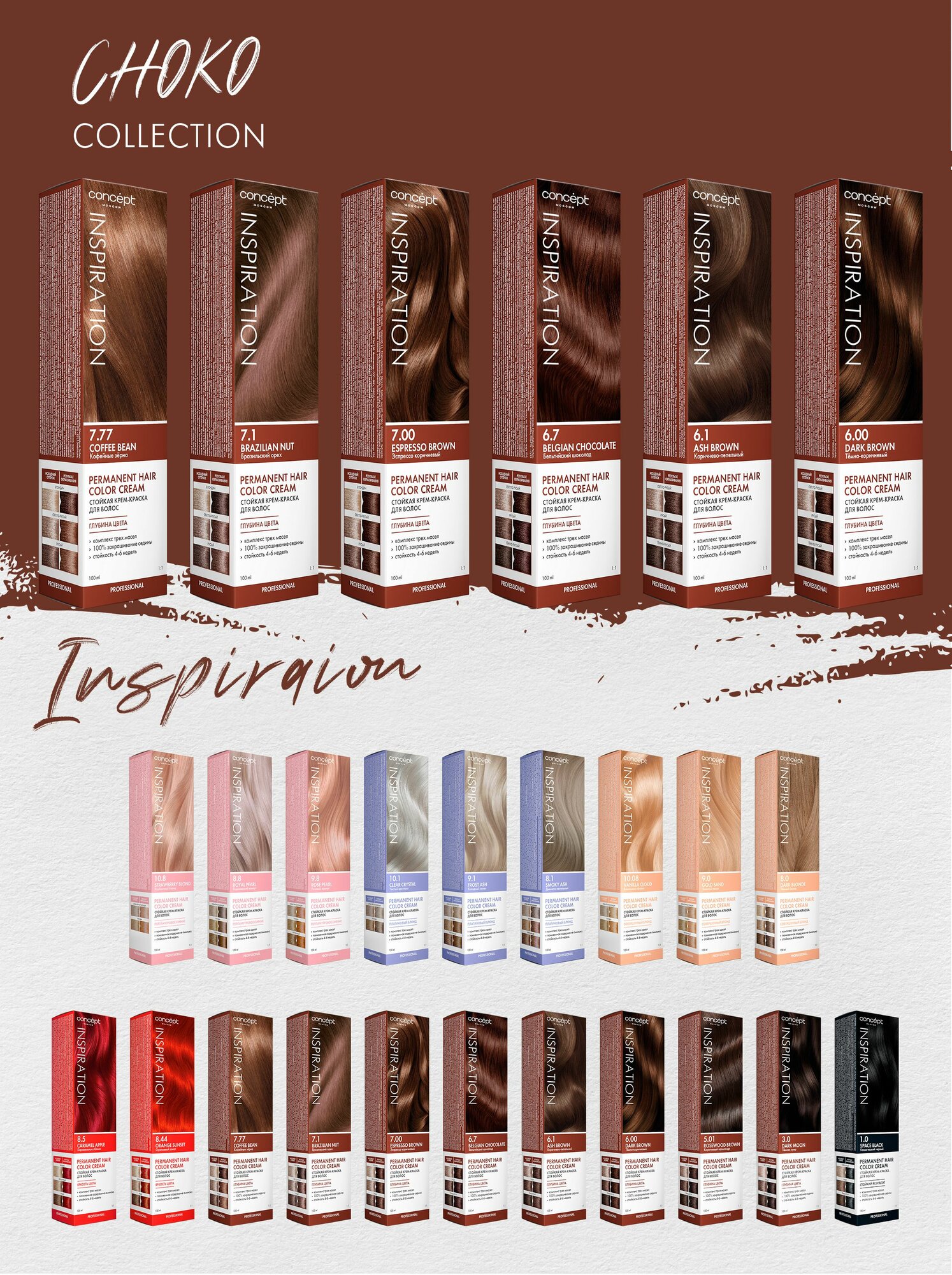 Крем-краска INSPIRATION для окрашивания волос CONCEPT FUSION 6.00 темно-коричневый 100 мл