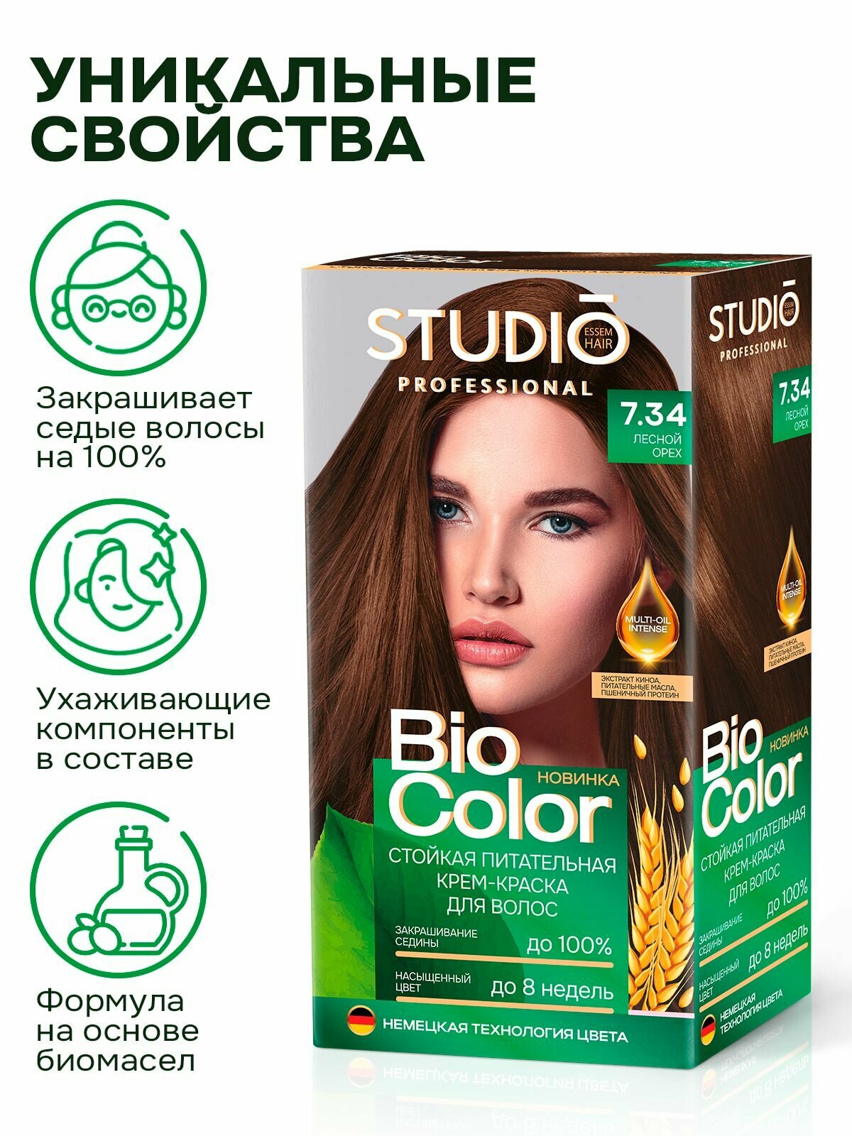 Студио / Studio Bio Color - Крем-краска для волос тон 7.34 Лесной орех 115 мл