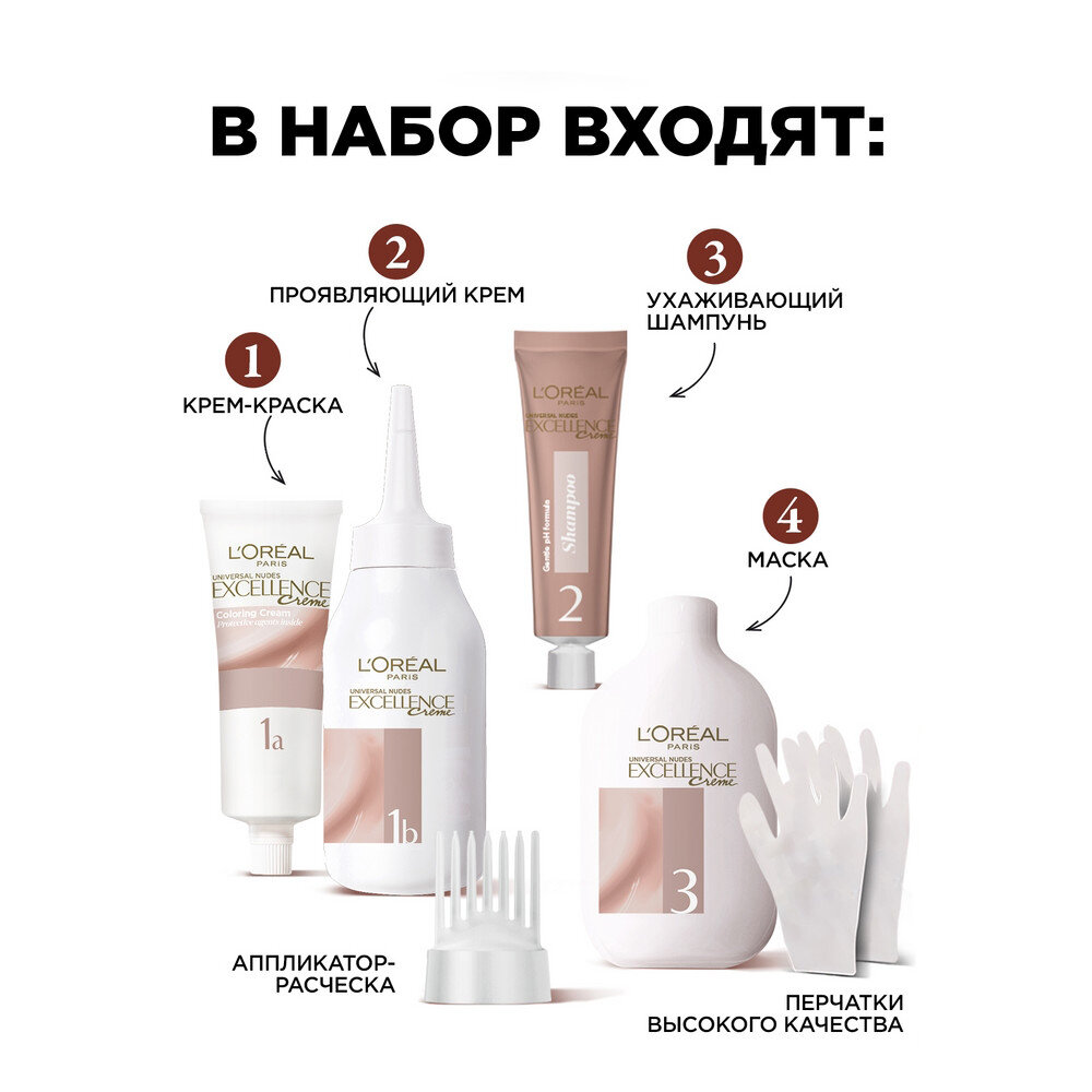 СохранитьКраска для волос без аммиака L'Oreal Paris Excellence Nudes, тон: 1U универсальный черный, 192мл интересное: