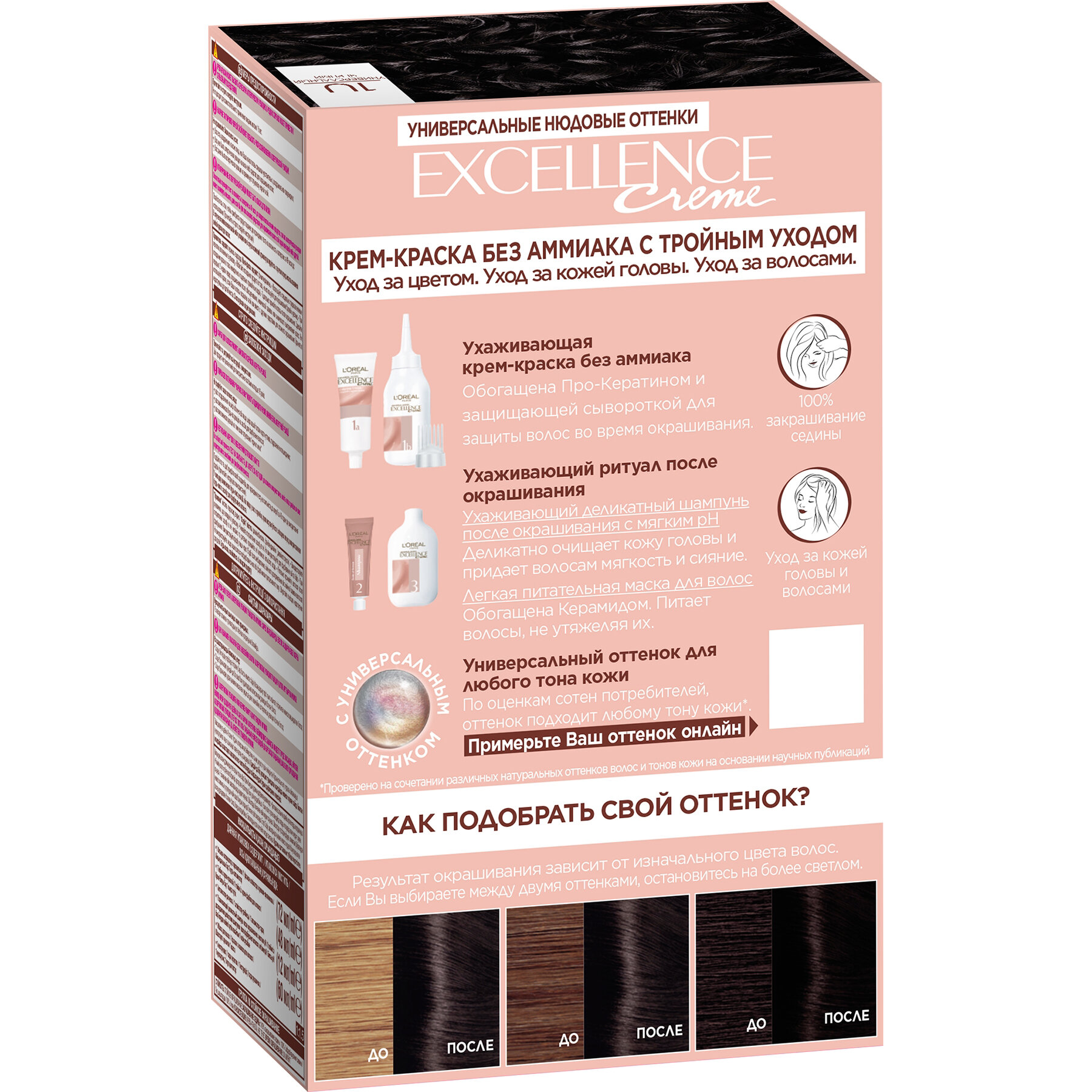 Купить Краска для волос без аммиака L'Oreal Paris Excellence Nudes, тон: 1U универсальный черный, 192мл
