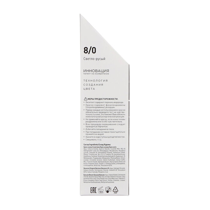 | Не содержит | аммиака / парабенов / полиэтиленгликоля / резорцина |