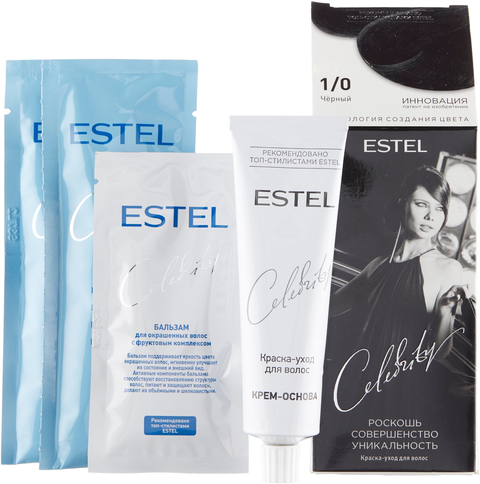 Краска-уход CELEBRITY для окрашивания волос ESTEL 1/0 черный 50+75+15 мл