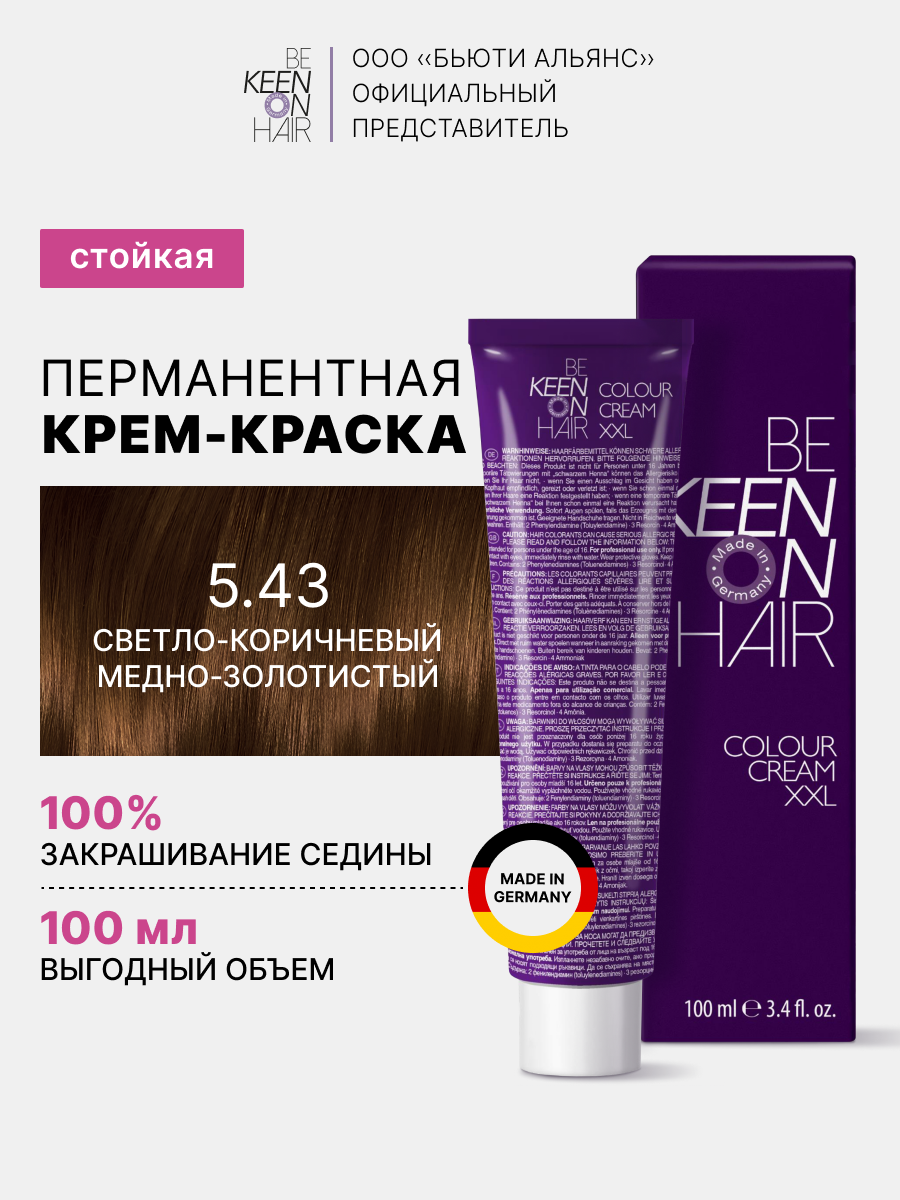 Купить Крем-краска для волос KEEN COLOUR 5.43 Hellbraun Kupfer-Gold/Светло-коричневый медно-золотистый 100