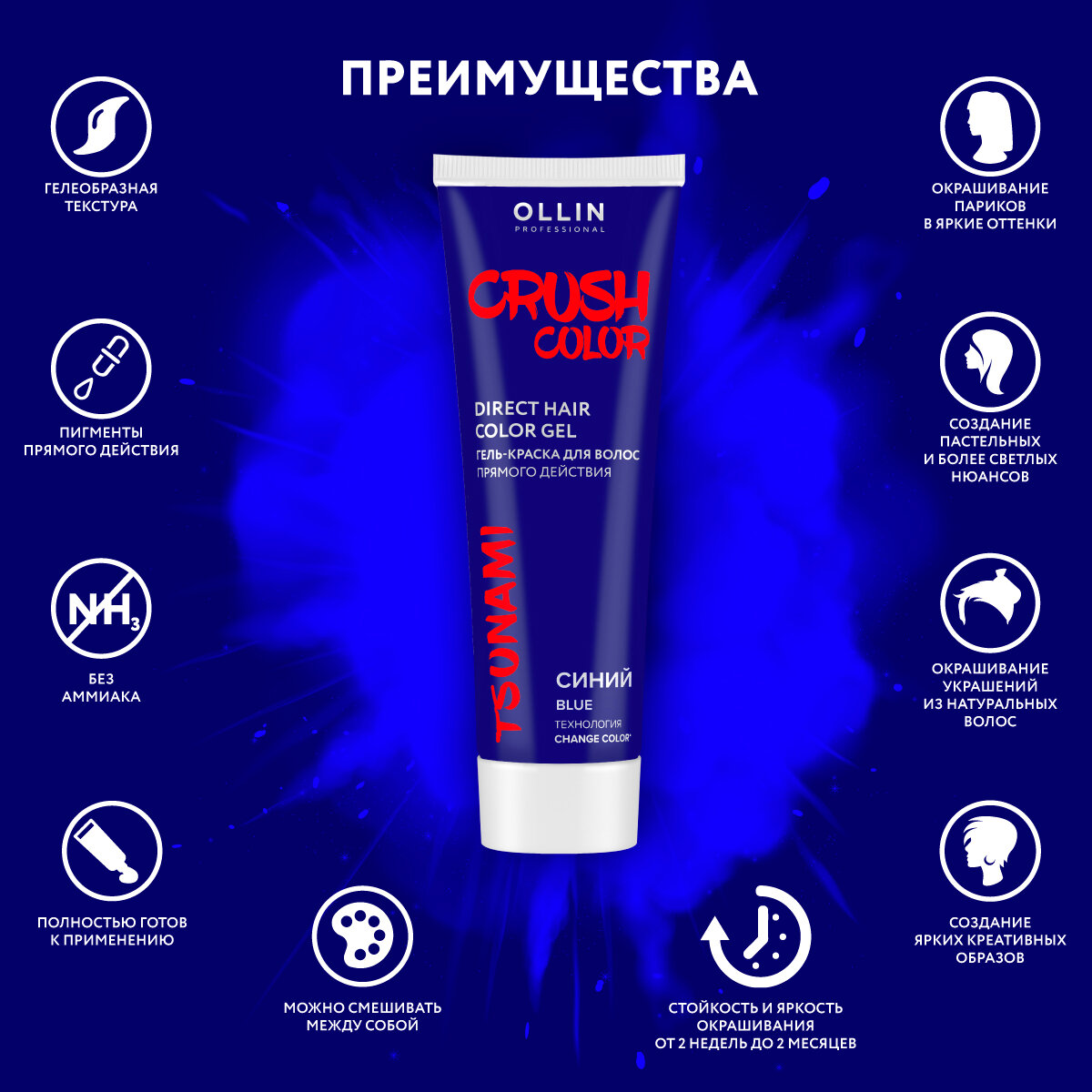 OLLIN CRUSH COLOR гель-краска прямого действия синяя 100МЛ