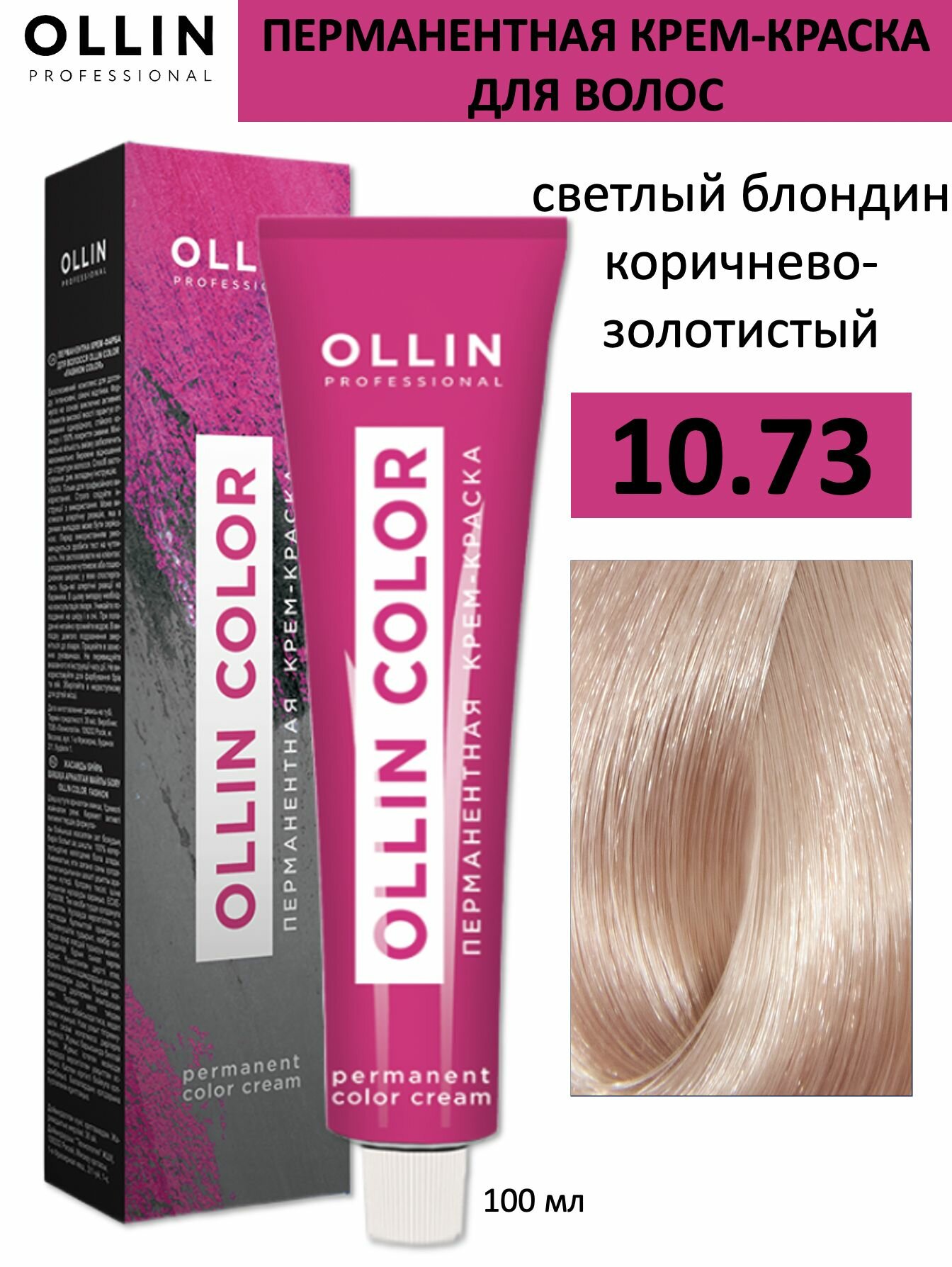 Ollin Color - Оллин Колор Стойкая крем-краска для волос, 100 мл - OLLIN COLOR 10/73 светлый блондин коричнево-золотистый