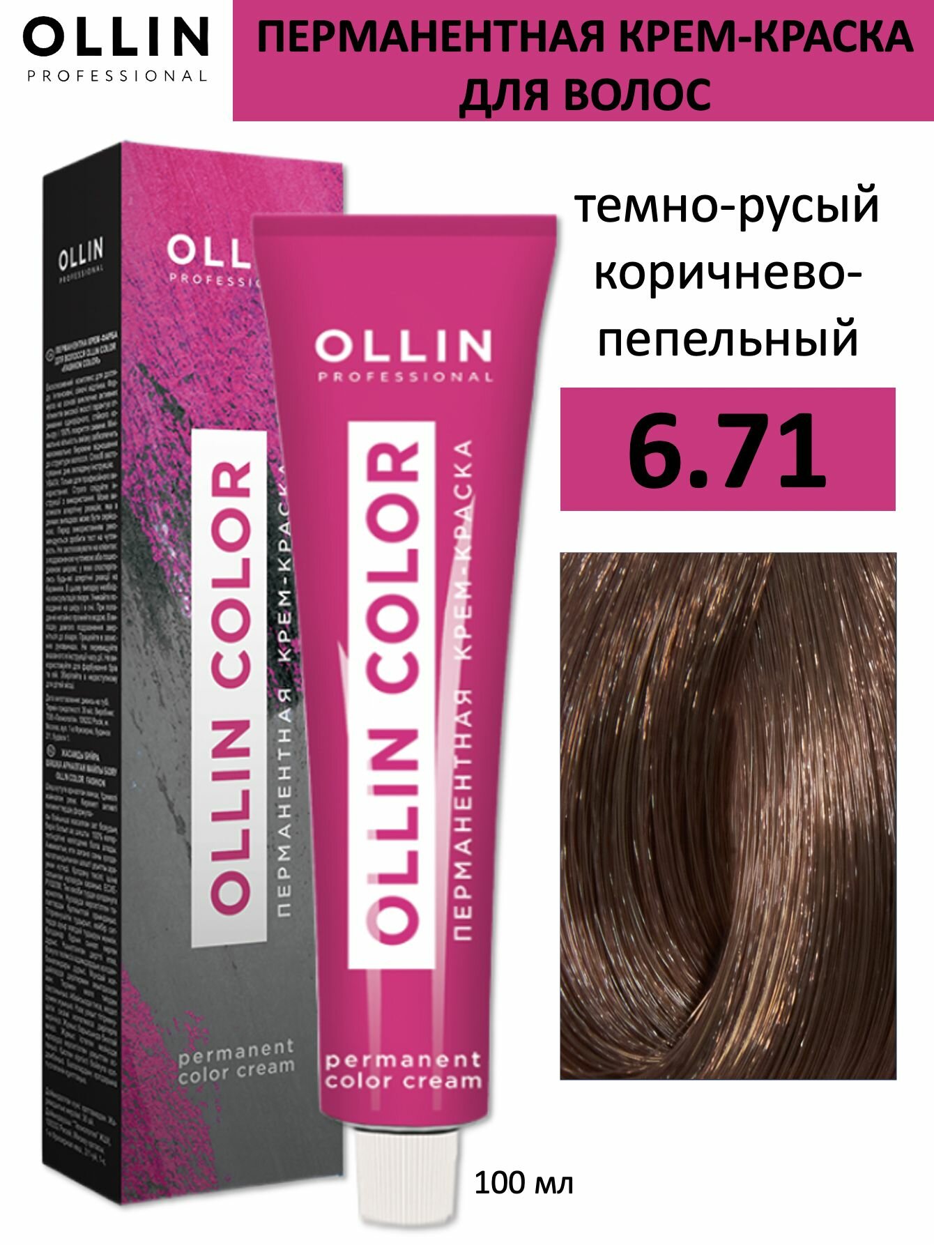 Купить OLLIN Professional Color перманентная крем-краска для волос, 6/71 темно-русый коричнево-пепельный, 100 мл