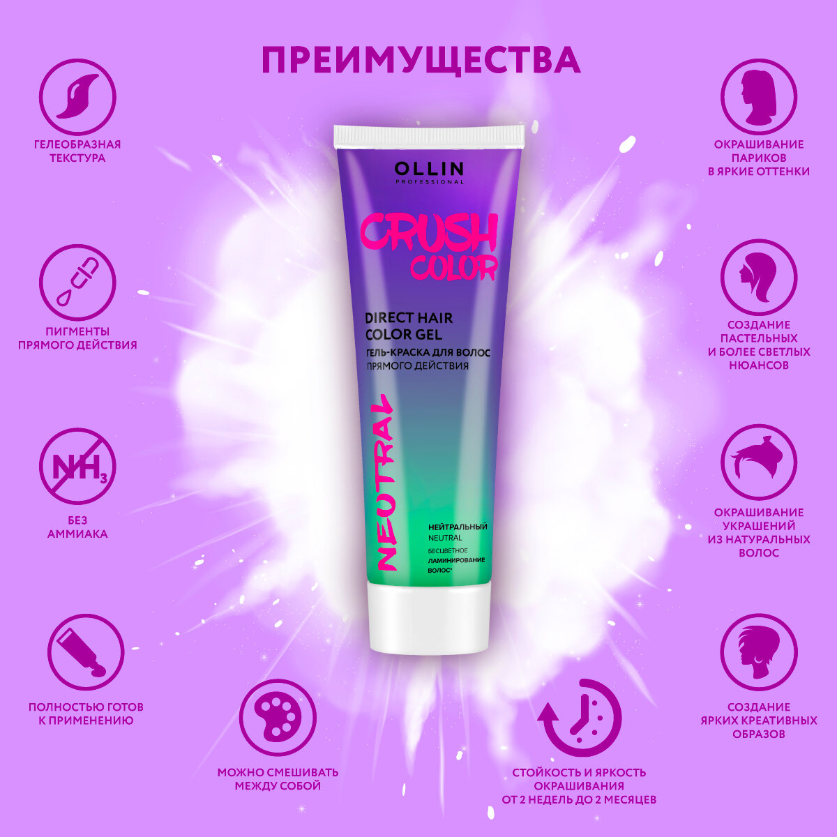 СохранитьCRUSH COLOR Гель-краска для волос прямого действия (нейтральный) 100 мл интересное: