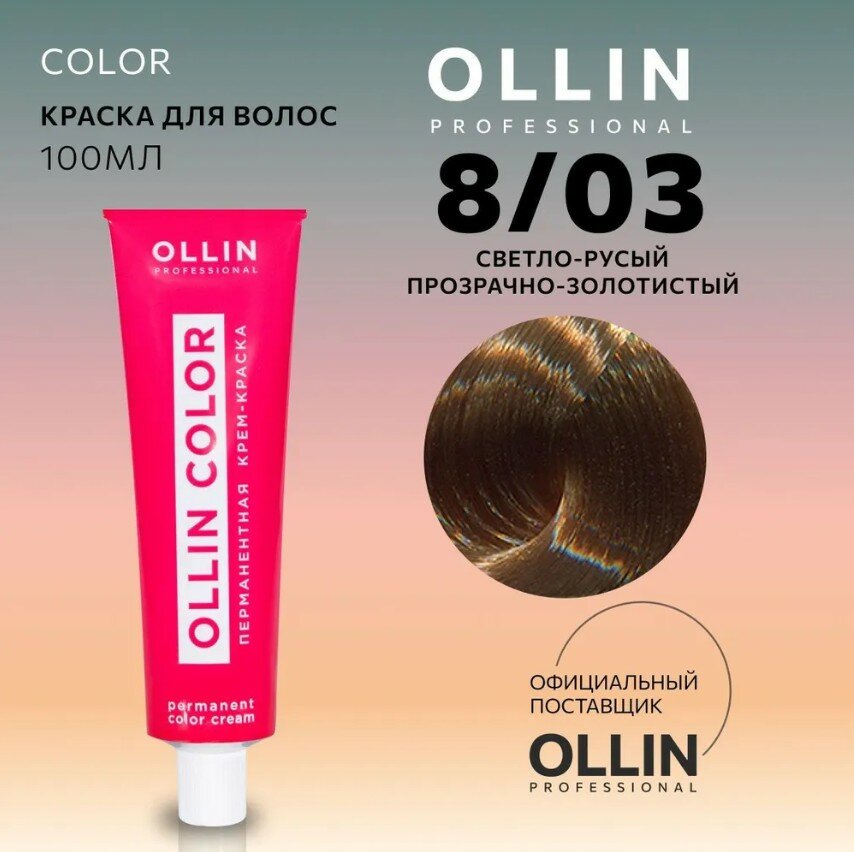 Ollin Color - Оллин Колор Стойкая крем-краска для волос, 100 мл - OLLIN COLOR 8/03 светло-русый прозрачно-золотистый