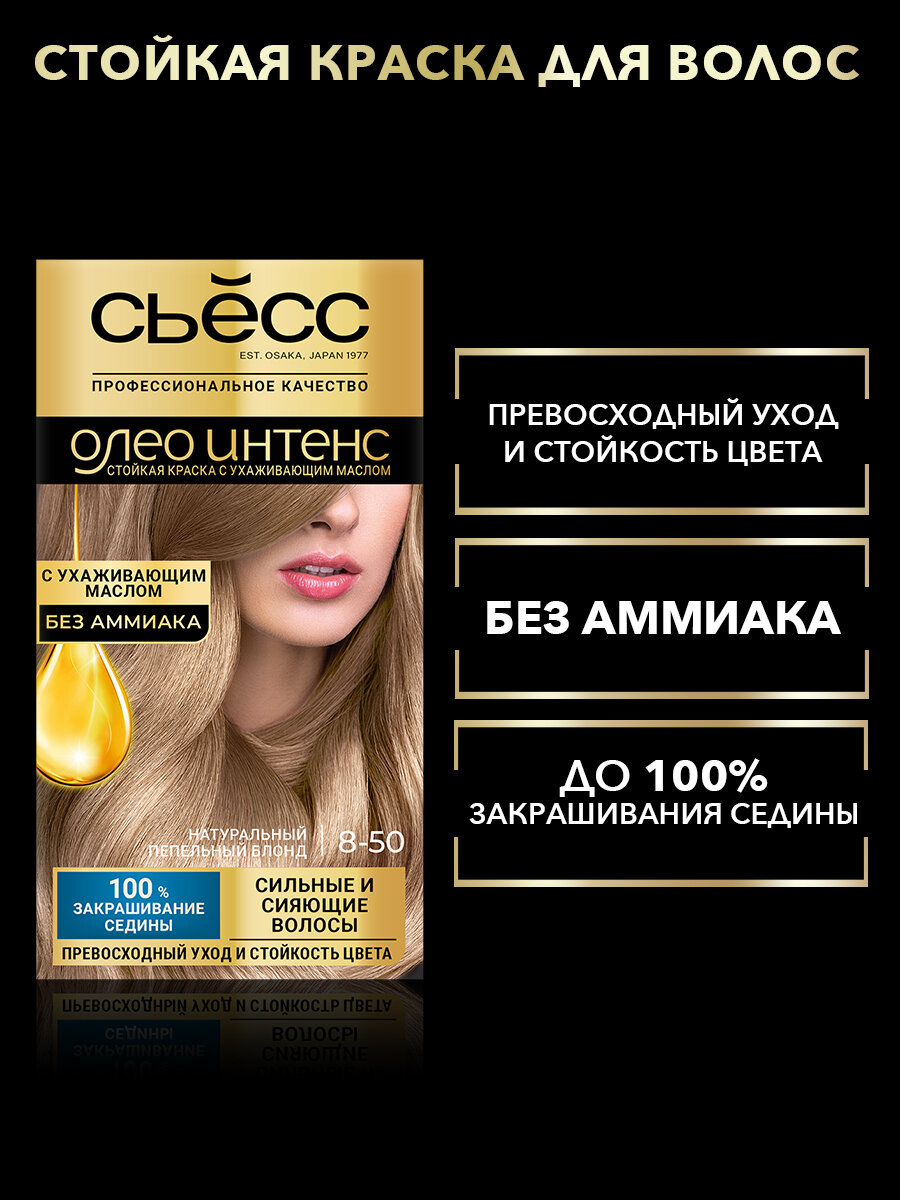 Купить Стойкая краска для волос Сьёсс Олео Интенс т.8-50 Натуральный пепельный блонд 115 мл