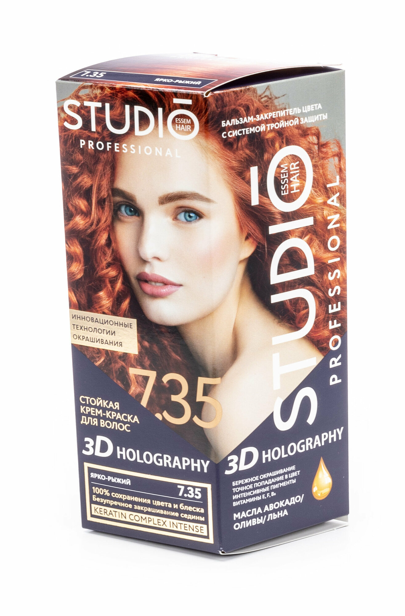 Комплект 3D HOLOGRAPHY для окрашивания волос STUDIO PROFESSIONAL 7.35 ярко-рыжий 2*50+15 мл