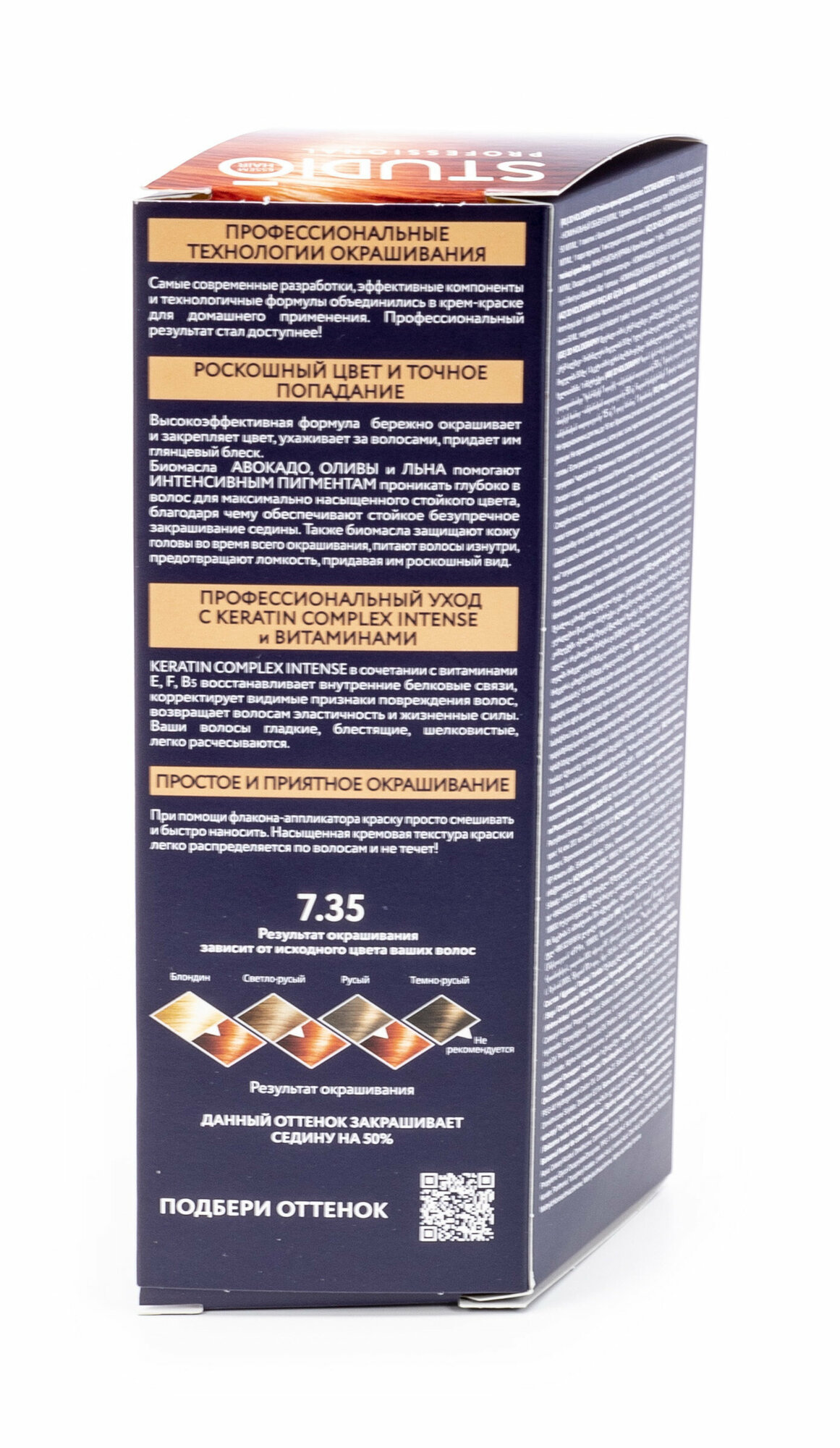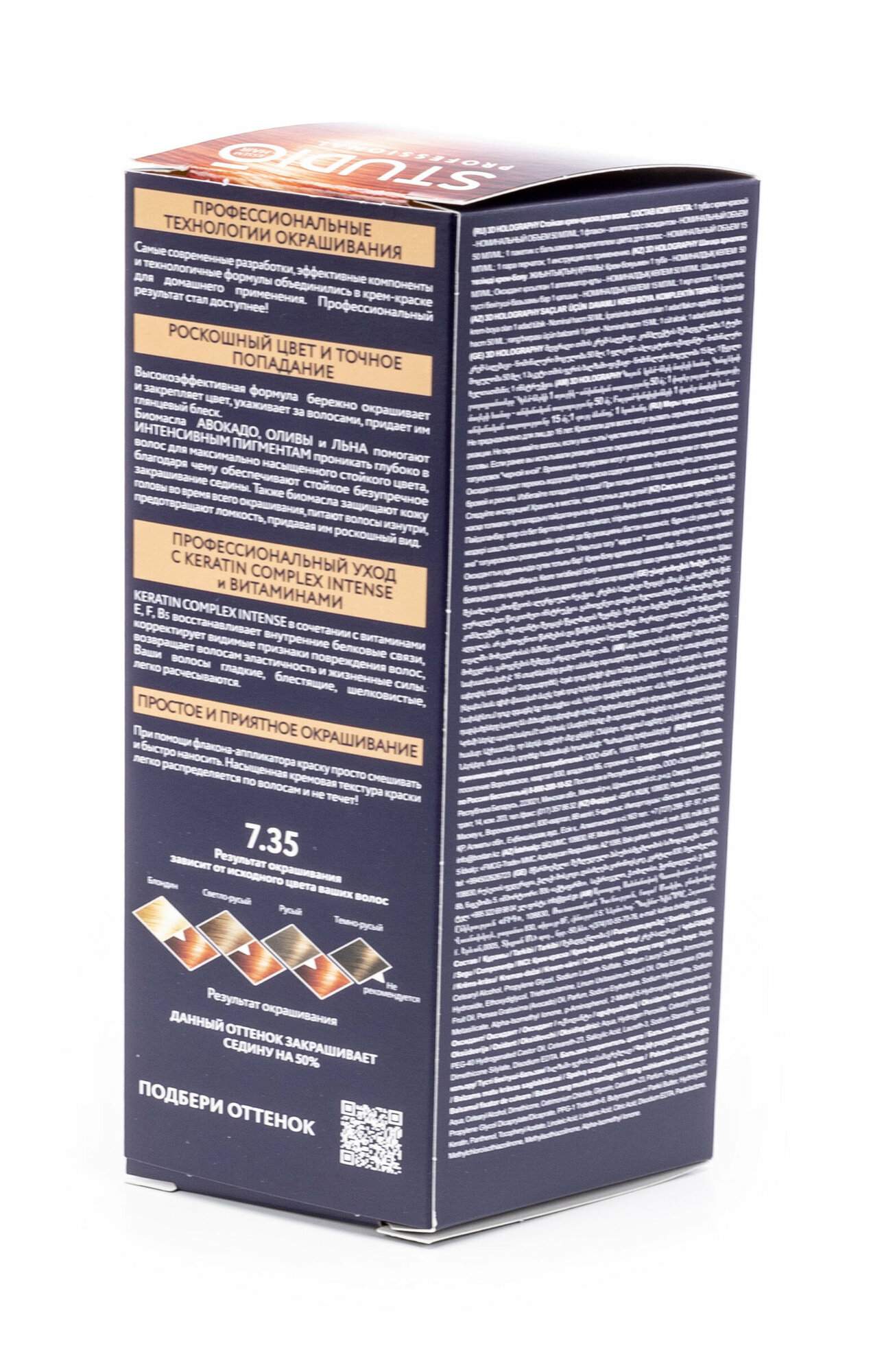 Studio стойкая крем-краска для волос 3Д Голографик 7.73 Янтарно-русый, 50/50/15 мл