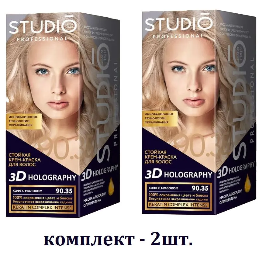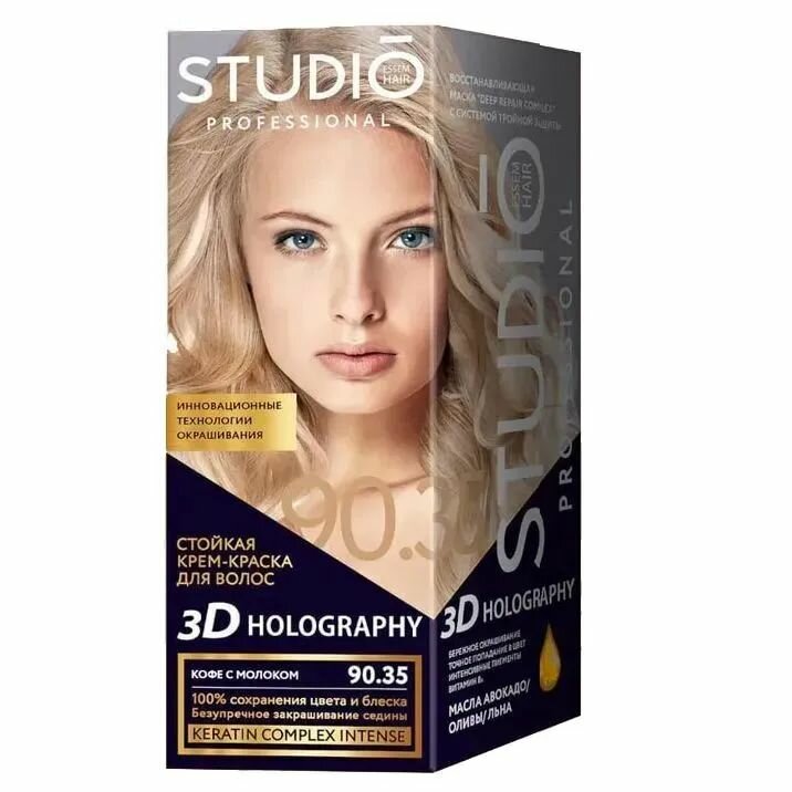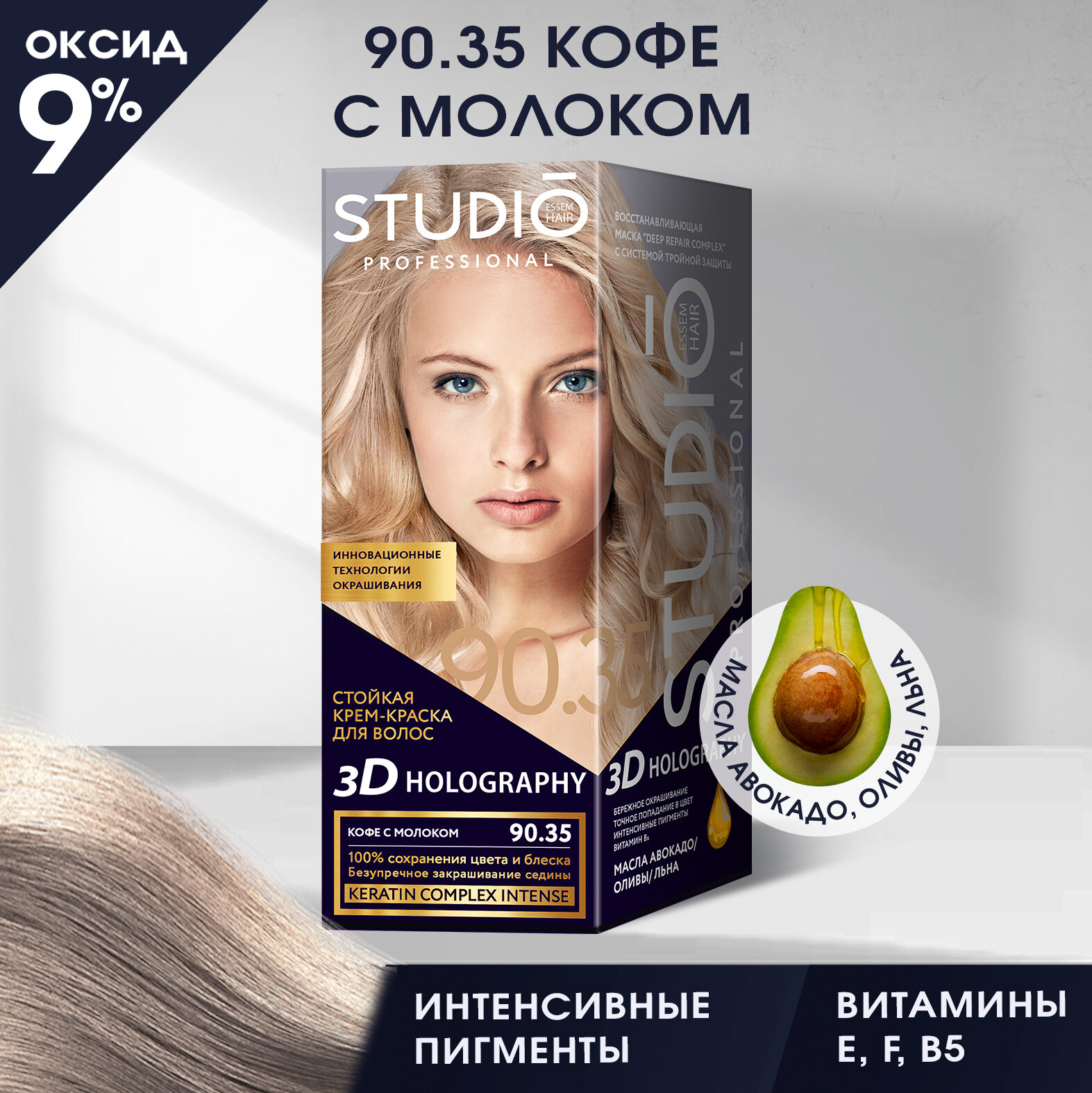 Купить Studio стойкая крем-краска для волос 3Д Голографик 90.35 Кофе с молоком, 50/50/15 мл