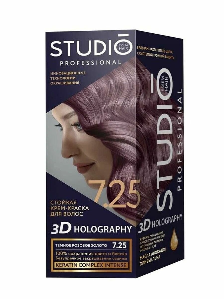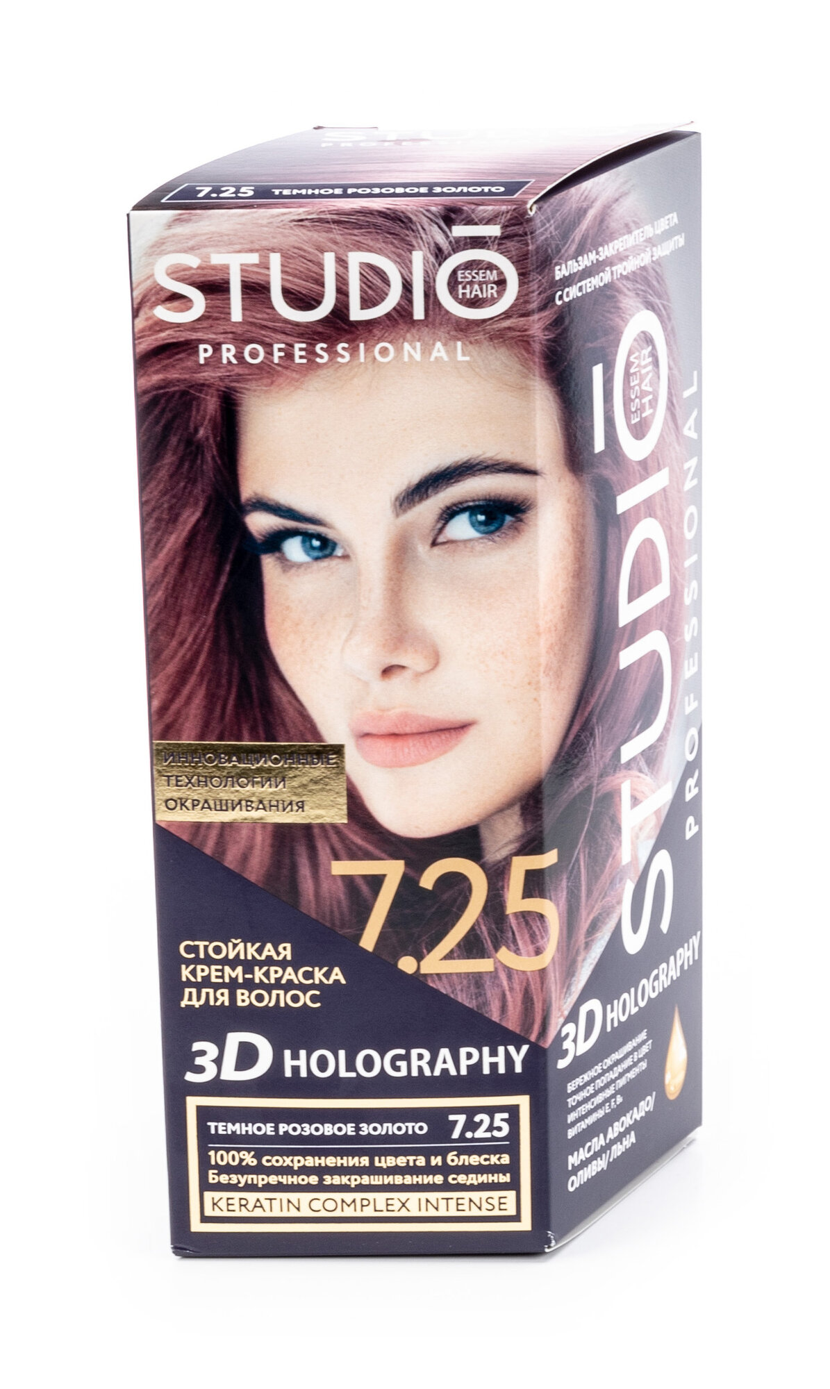 Studio стойкая крем-краска для волос 3Д Голографик 7.25 Темное розовое золото, 50/50/15 мл