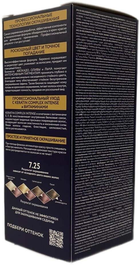 СохранитьКомплект 3D HOLOGRAPHY для окрашивания волос STUDIO PROFESSIONAL 7.25 темное розовое золото 2*50+15 мл интересное: