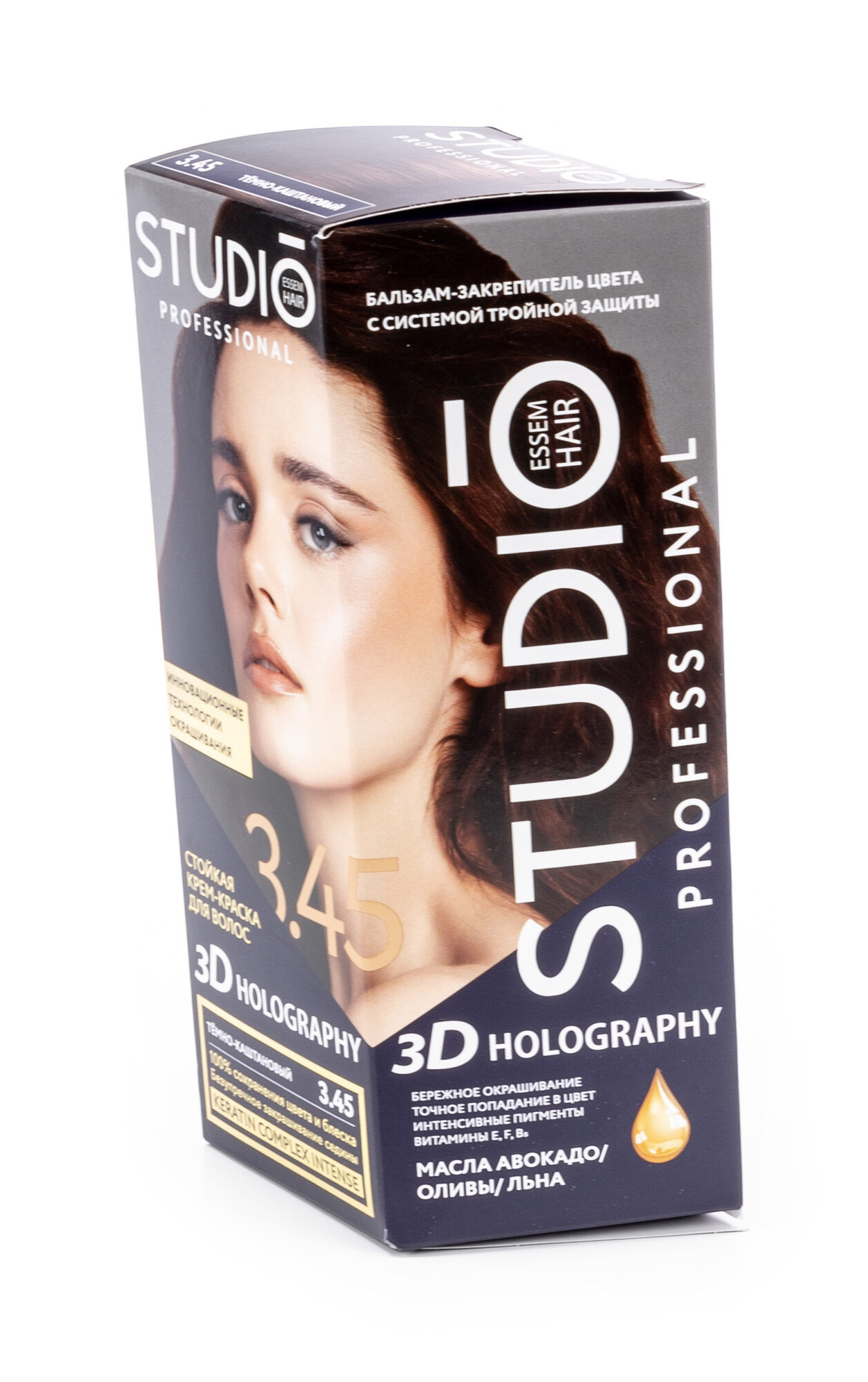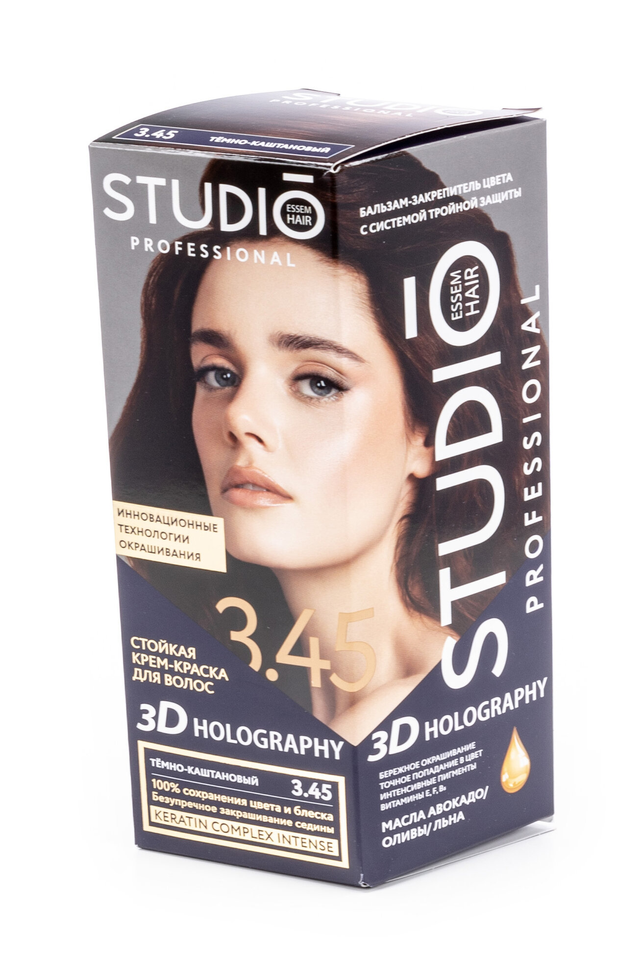 Studio, крем-краска для волос 3Д Голографик, 3.45 Тёмно-каштановый, 115 мл