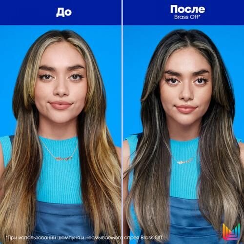 | Способ применения | Наносите спрей на вымытые подсушенные полотенцем волосы, предварительно разделив их на секции. С расстояния 10-15 см нанесите спрей 1-3 нажатиями в зависимости от длины и густоты волос на каждую секцию. Тщательно расчешите, уложите как обычно. Можно использовать отдельно или после шампуня, кондиционера или маски Brass Off. Спрей содежит синий пигмент. Будьте аккуратны при нанесении: может оставить следы на одежде. |