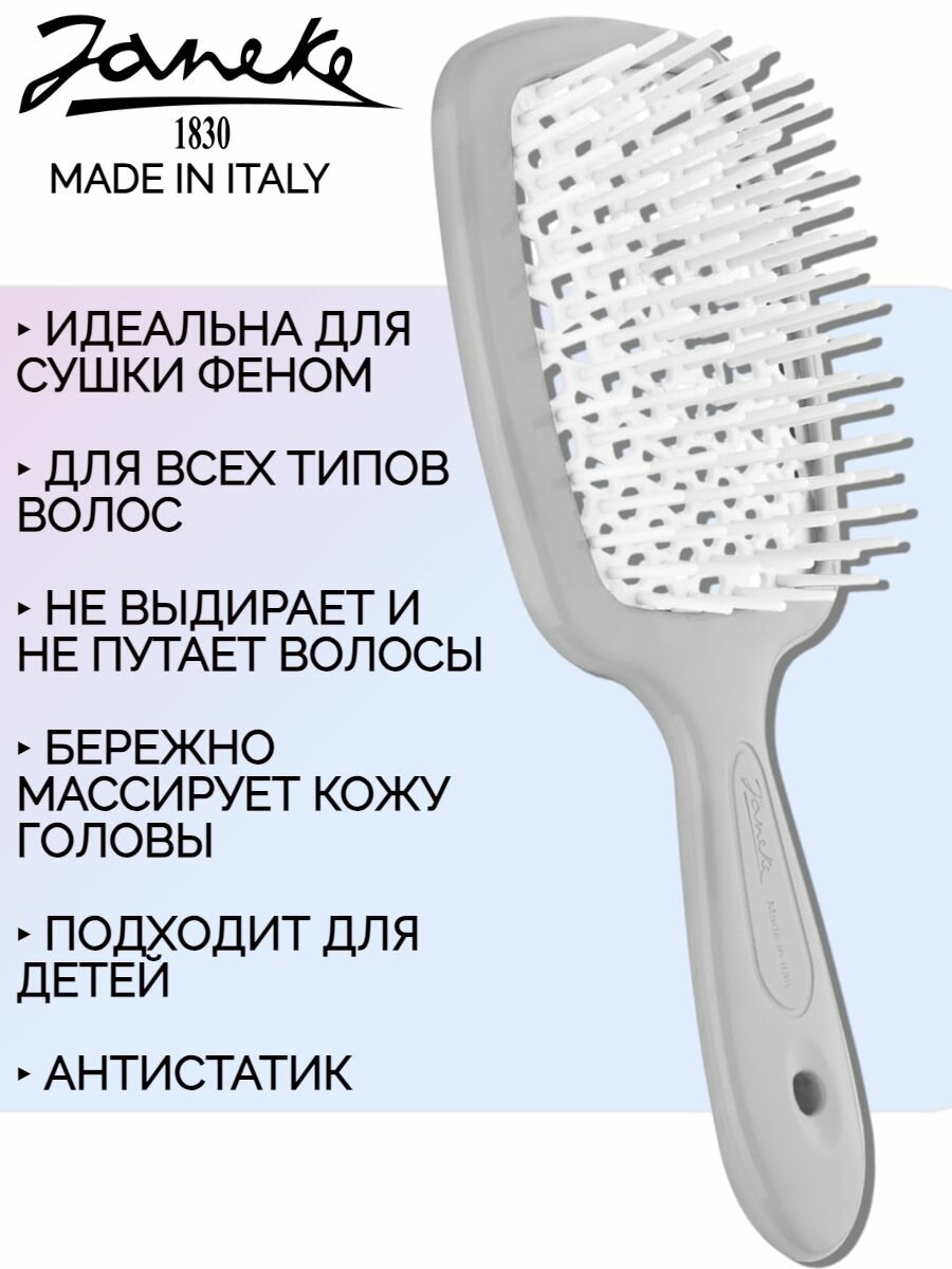 Janeke SUPERBRUSH Щетка для волос малая, 94SP234GRI, серый/белый, 17,5x7x3 см