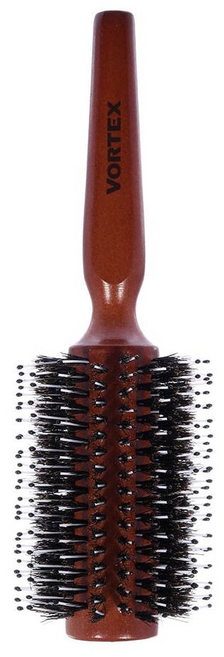Расческа деревянная, брашинг /для волос/с ручкой/для укладки D-7,5х23 см, с пластиковыми зубчиками и натуральной щетиной "VORTEX"
