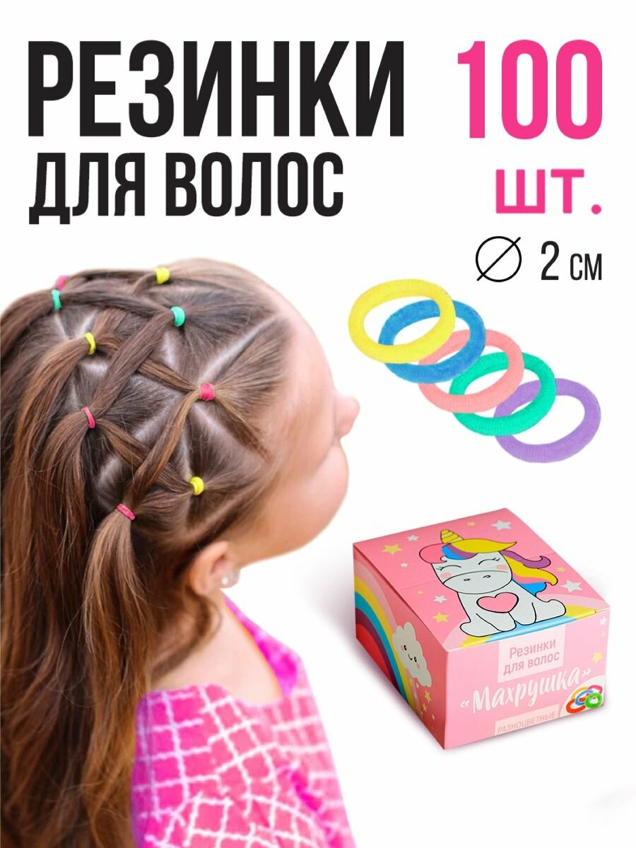 Набор резинок для волос «Махрушка», единорог 100 шт, диаметр 2 см, разноцветные