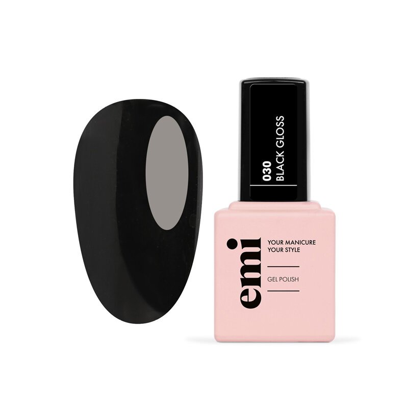 E.MI 030 гель-лак для ногтей, Черный глянец / E.MiLac 9 мл