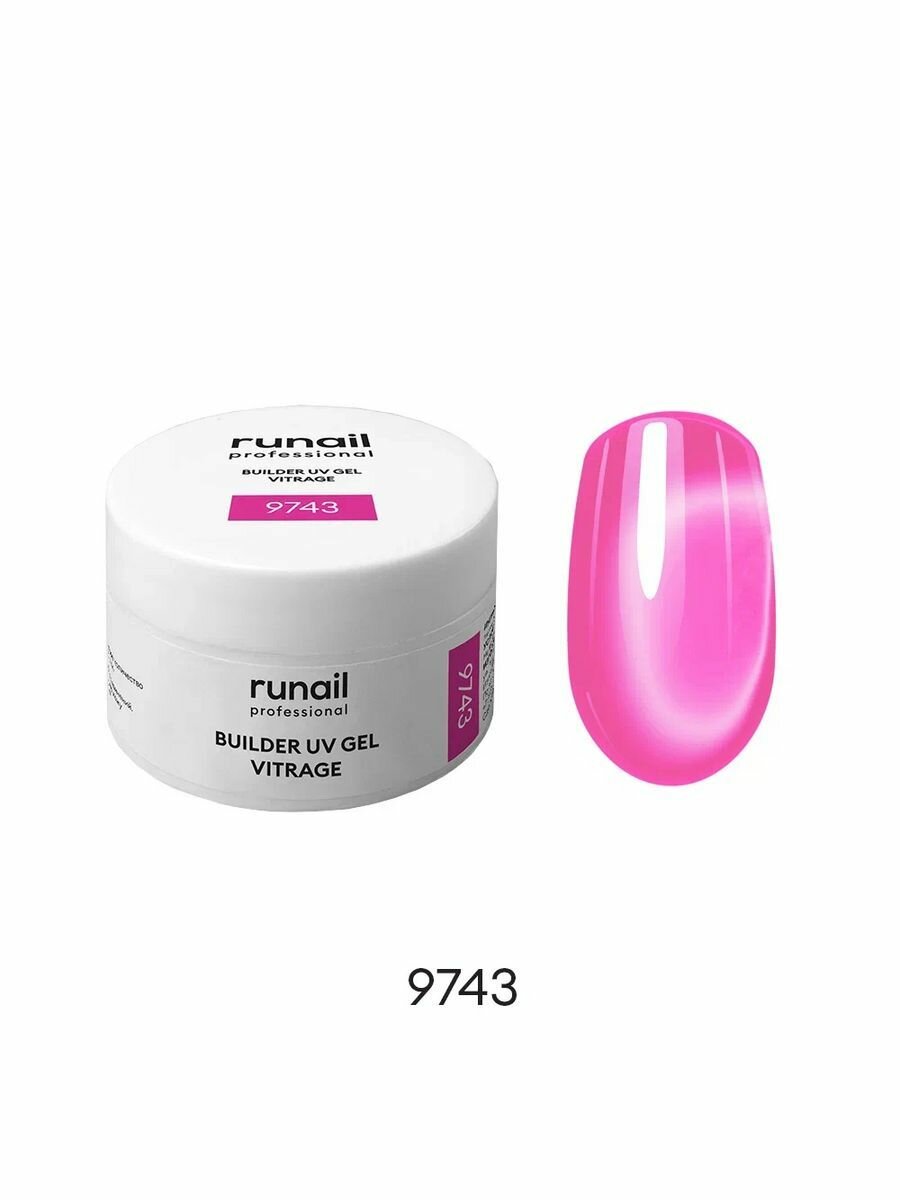 RuNail, BUILDER UV GEL VITRAGE - моделирующий УФ-гель витражный №9743, 15 гр
