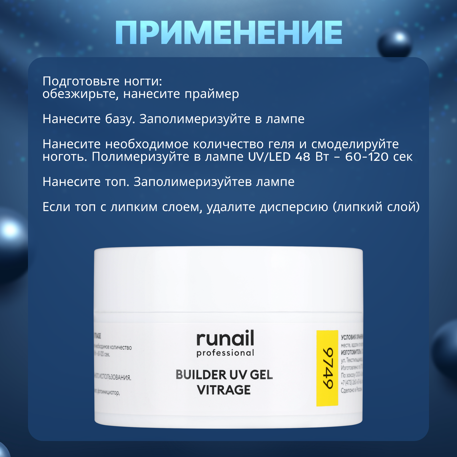 RuNail, BUILDER UV GEL VITRAGE - моделирующий УФ-гель витражный №9747, 15 гр
