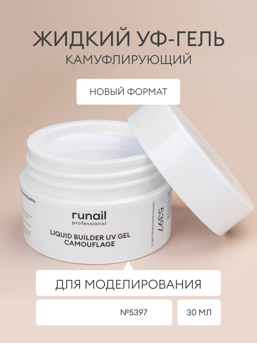 RUNAIL, Камуфлирующий жидкий Уф-гель (цвет: Нежный лепесток) №5399, 30 мл