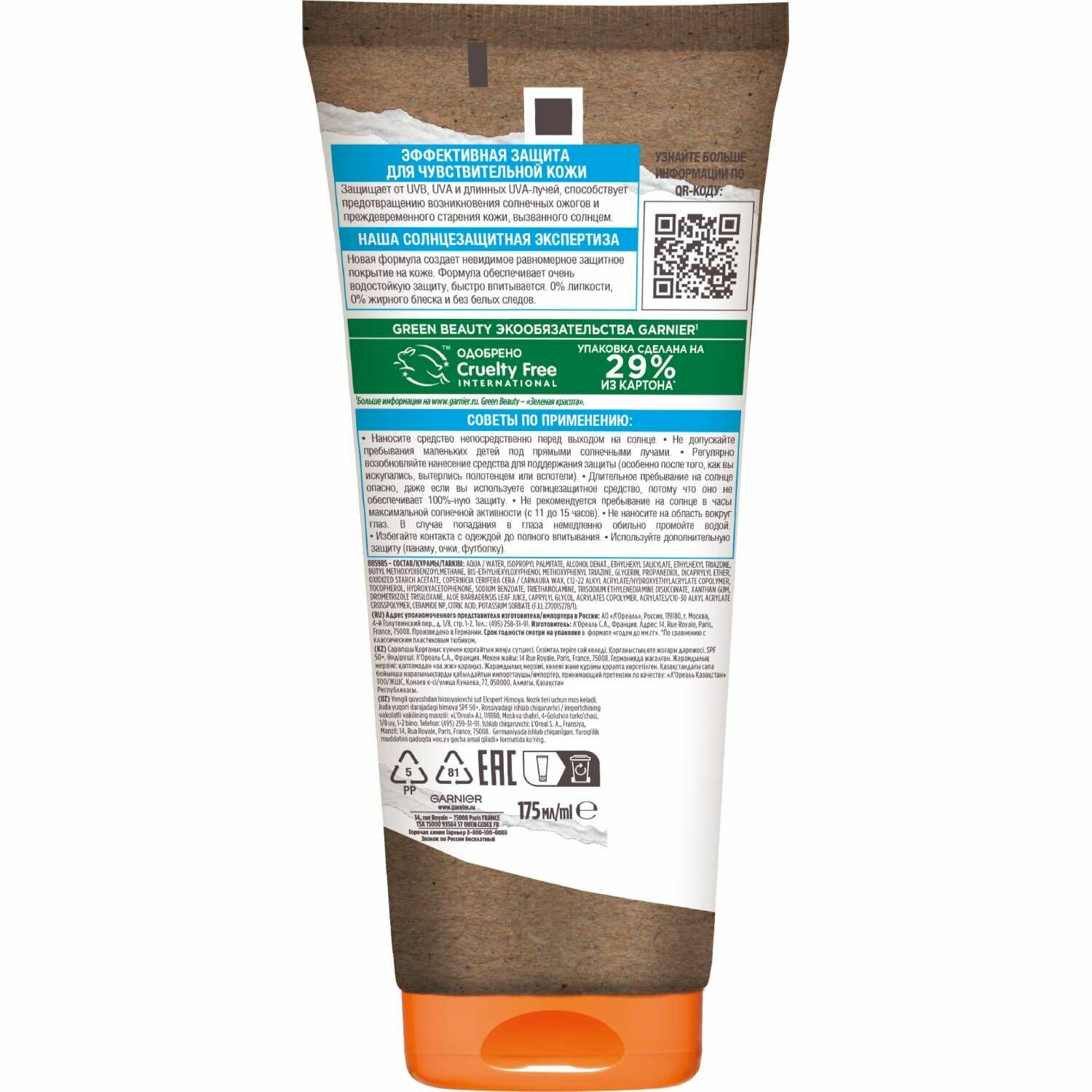 Солнцезащитное молочко Garnier легкое гипоаллергенное Ambre Solaire водостойкое SPF50+ 175мл