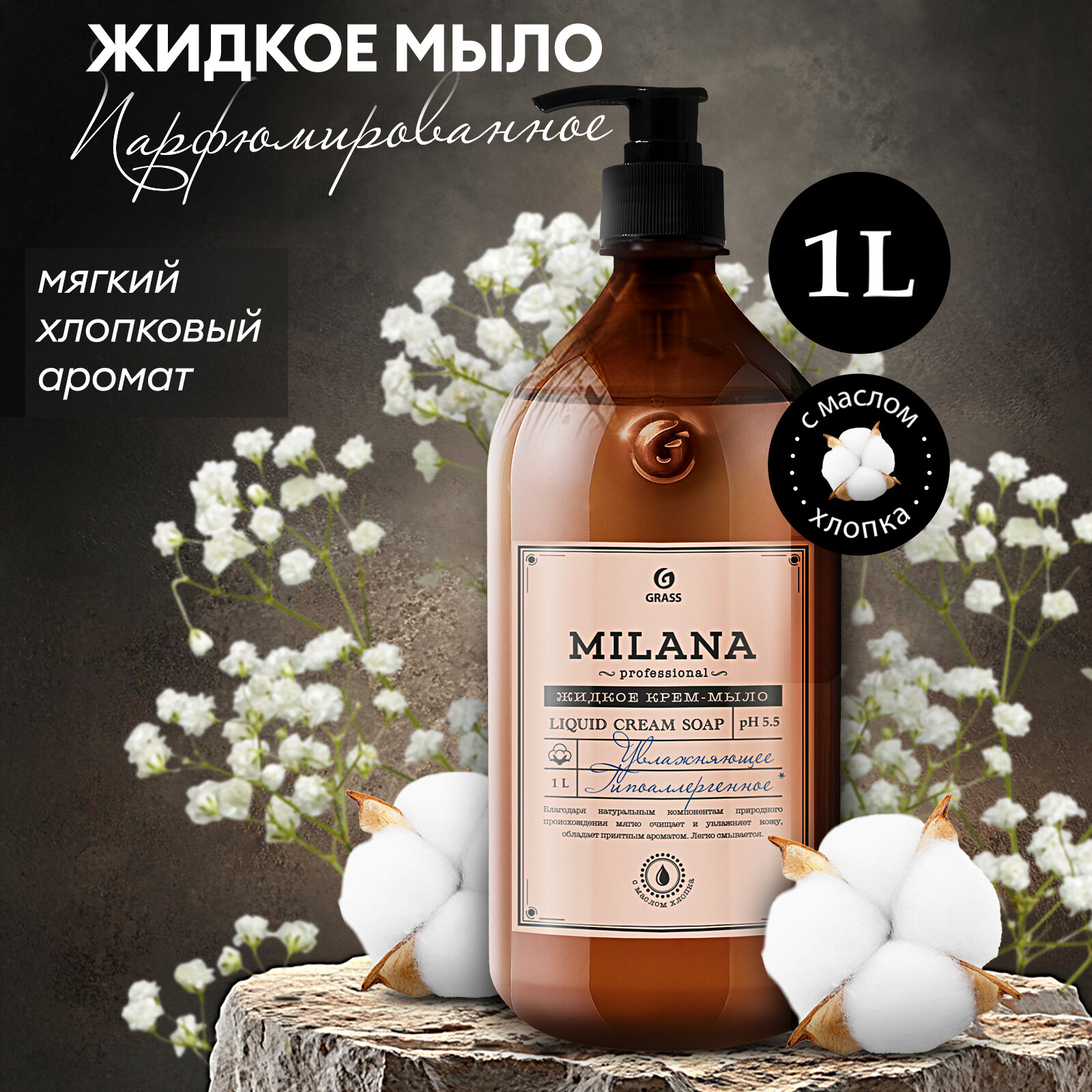 Жидкое крем мыло Grass для рук увлажняющее Milana Professional с экстрактом хлопка,1 л. интересное: