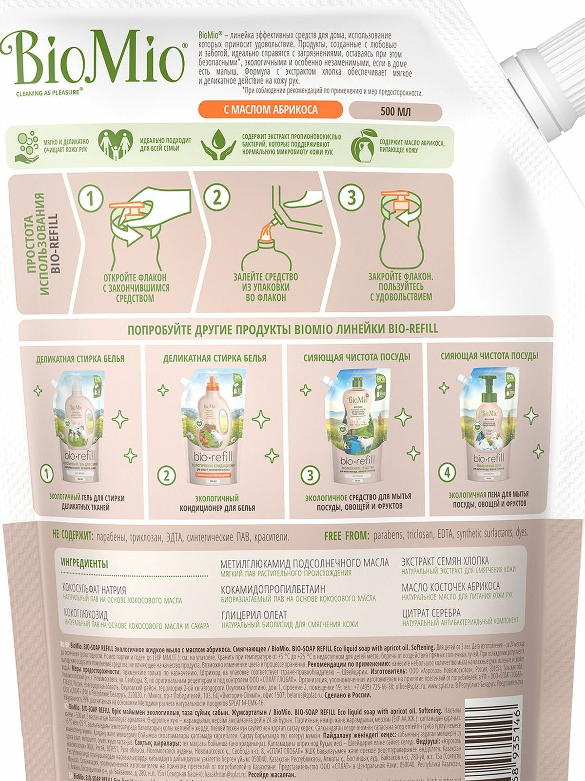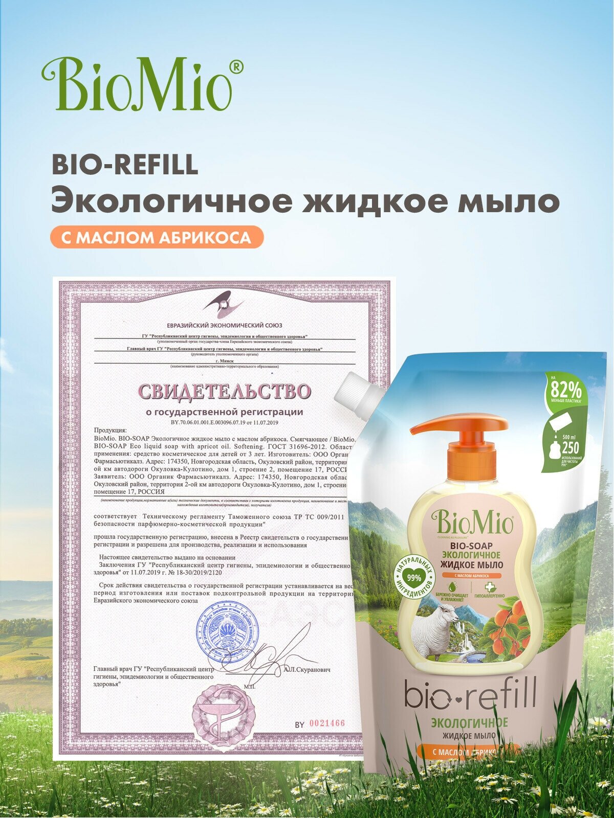 Купить Экологичное жидкое мыло BioMio Bio-Soap с маслом абрикоса, сменный блок, 500 мл