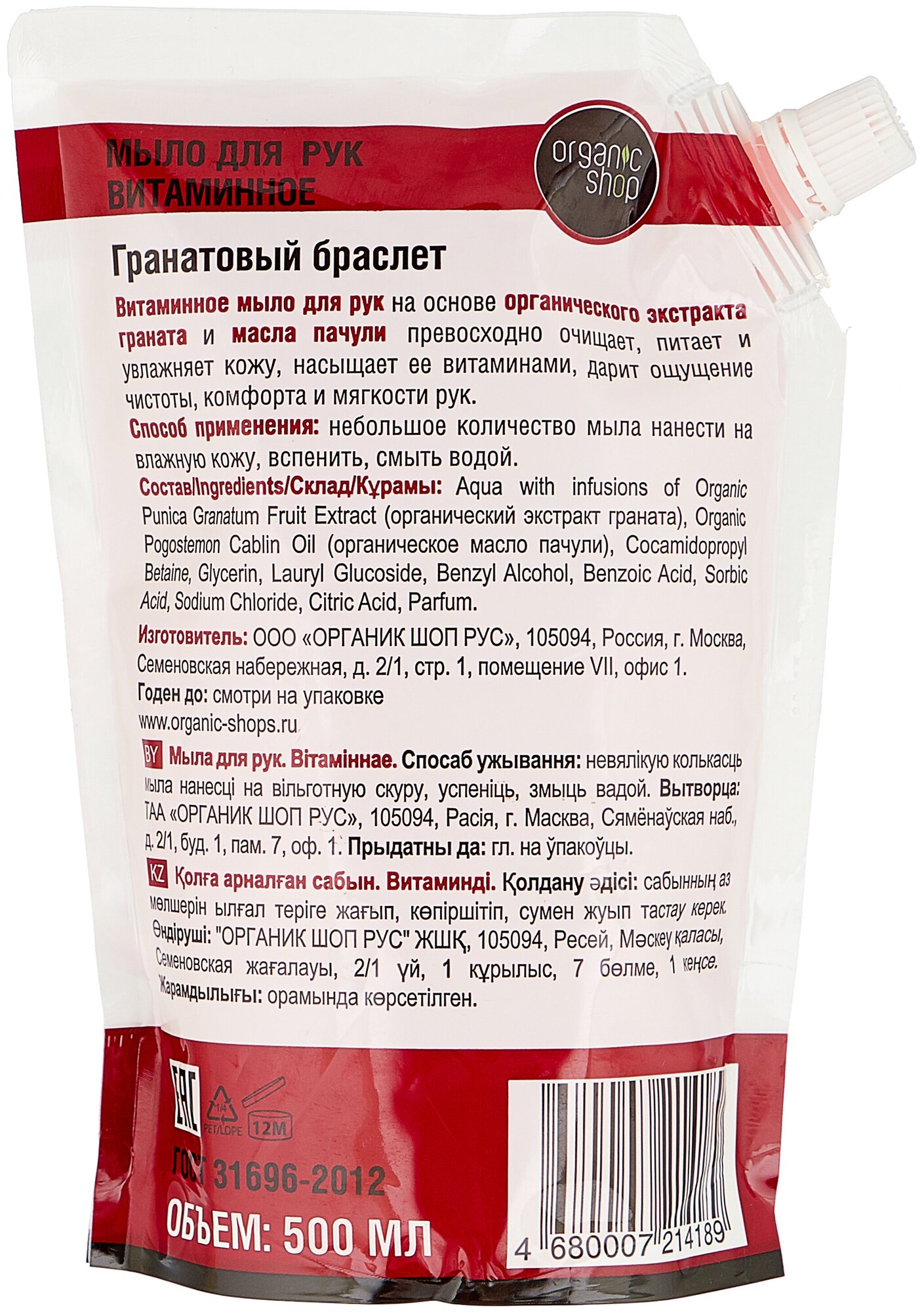 Жидкое мыло для рук Organic Shop гранатовый браслет дой пак 500 мл интересное: