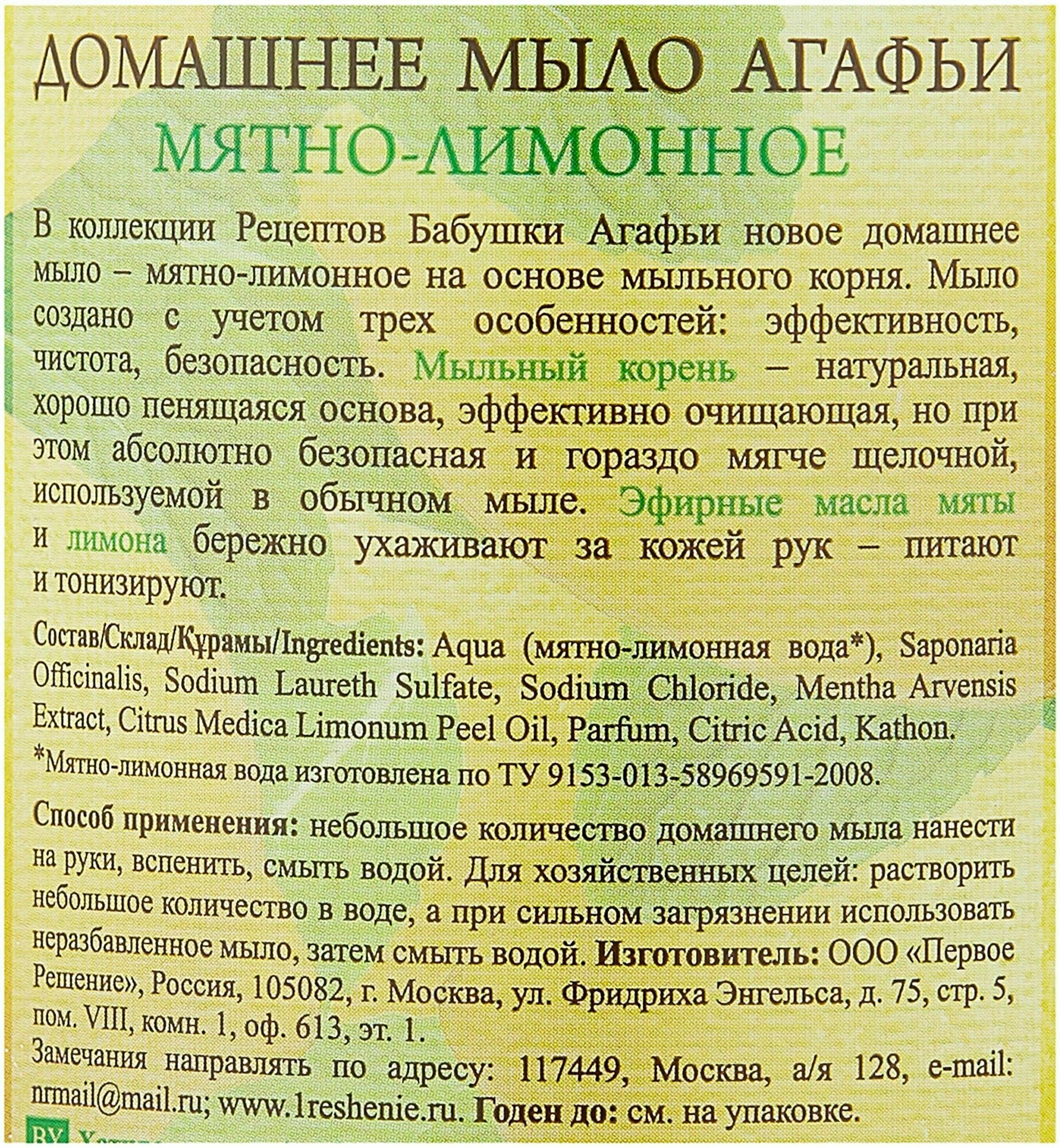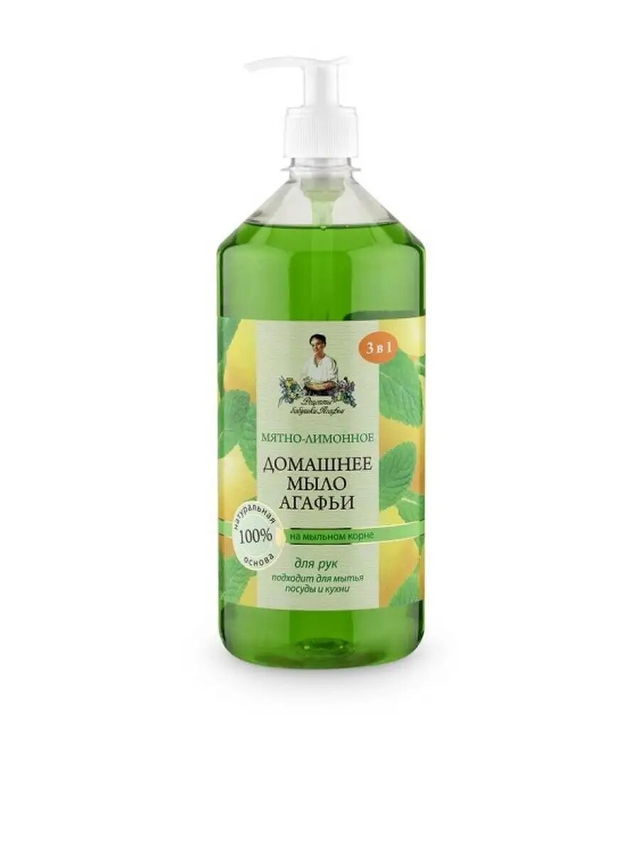 Мыло жидкое рецепты бабушки агафьи Домашнее Мятно-лимонное, 1л - 3 шт.