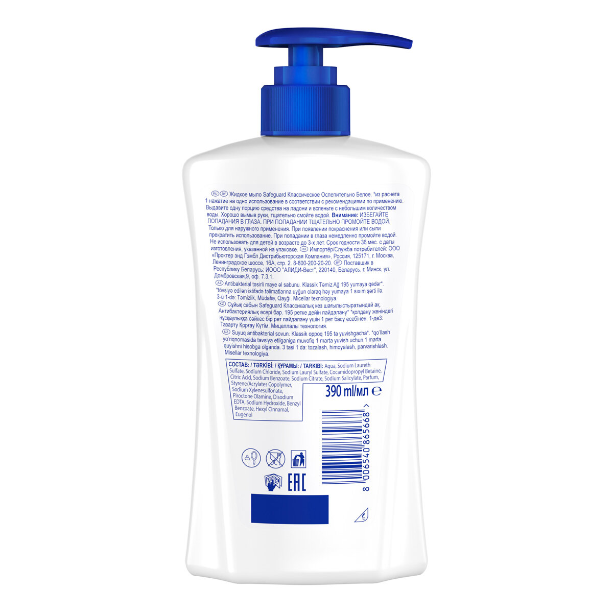 SAFEGUARD Жидкое мыло Классическое Ослепительно Белое 390мл