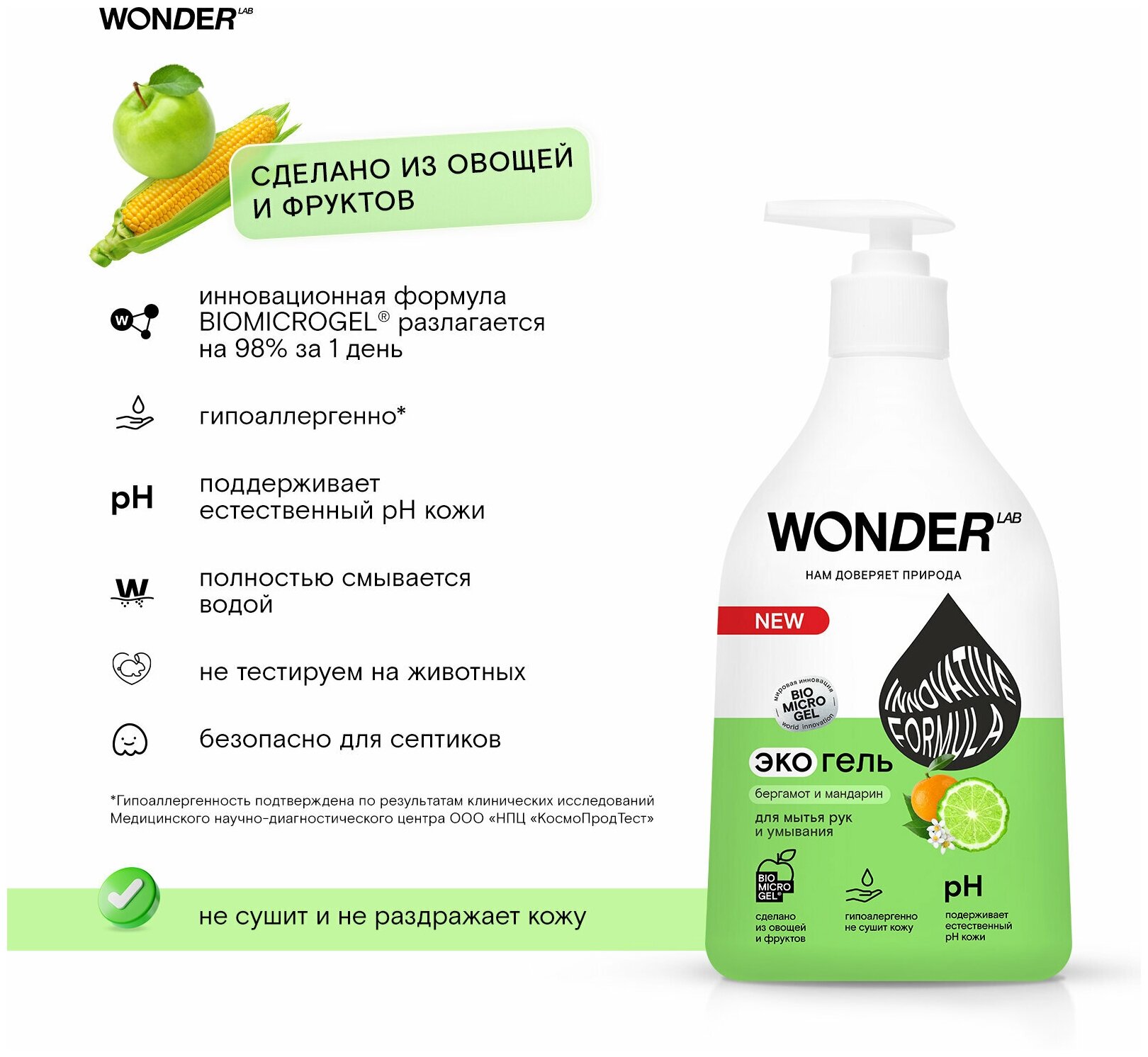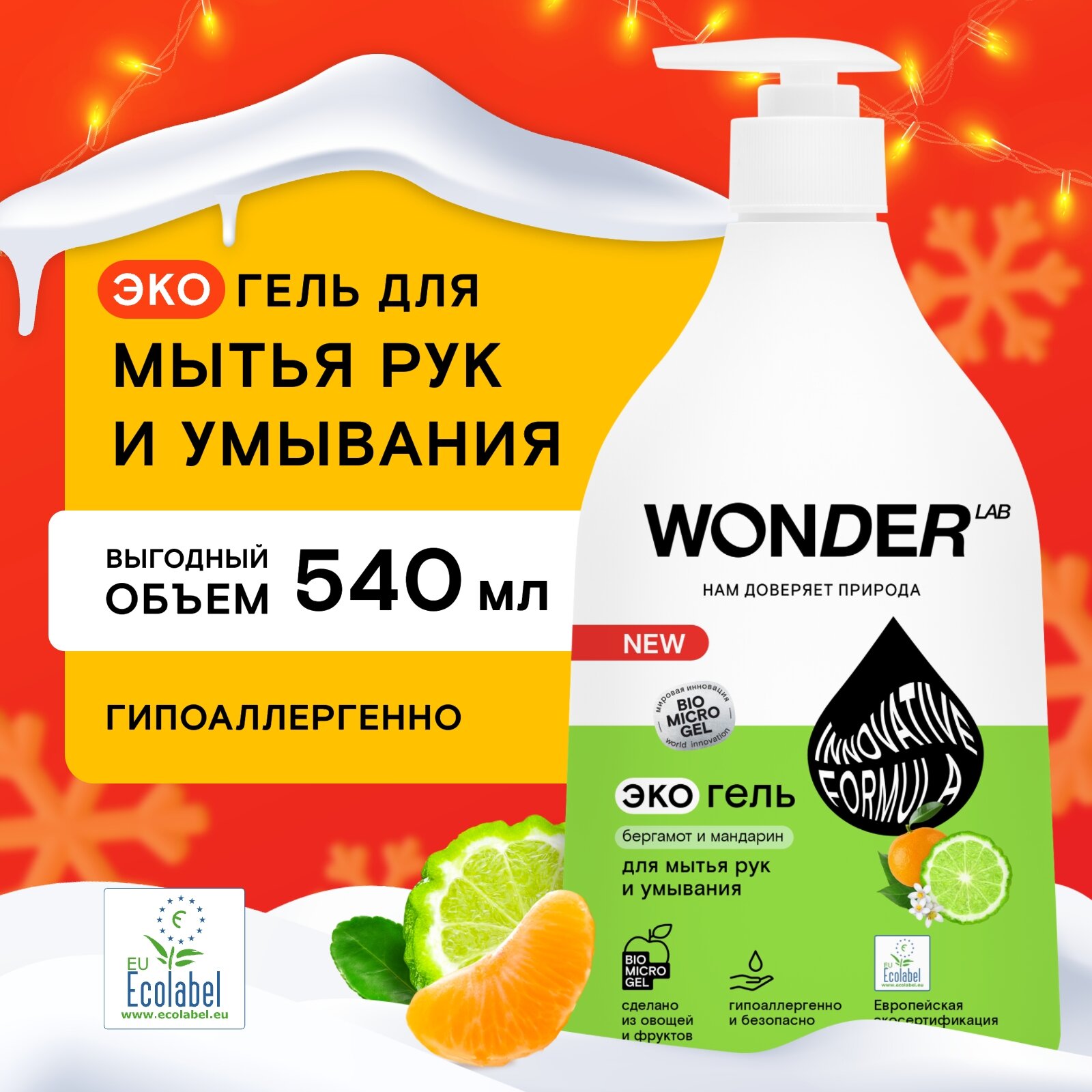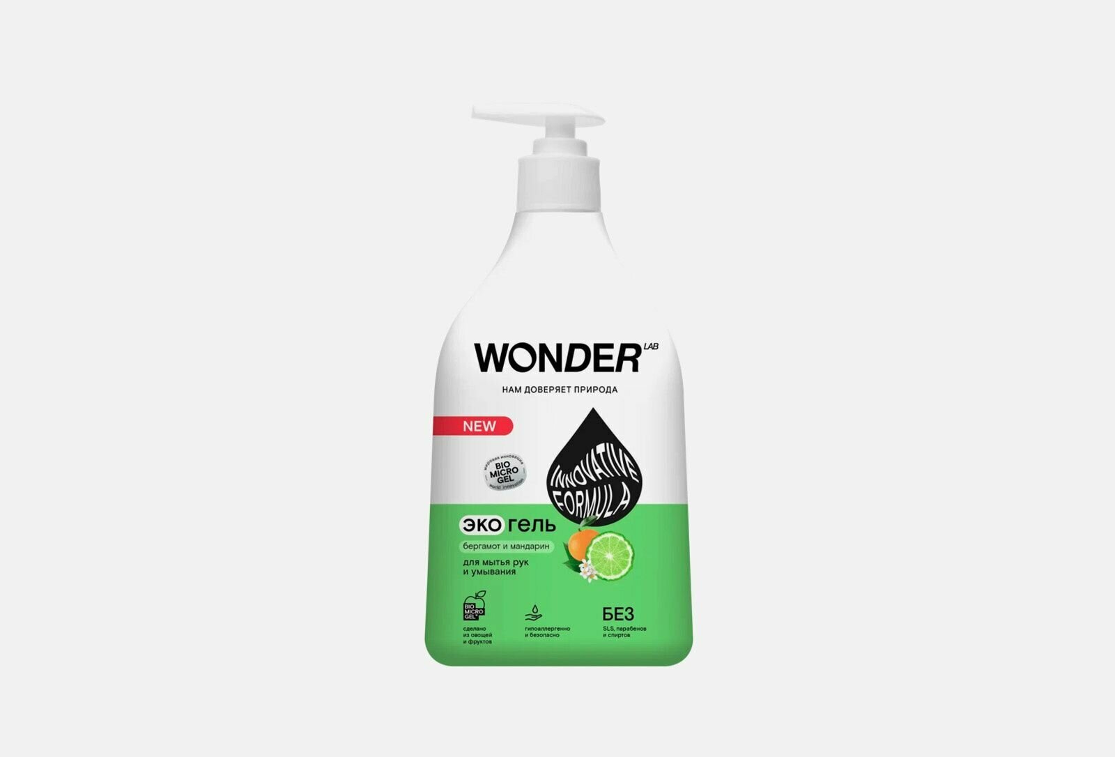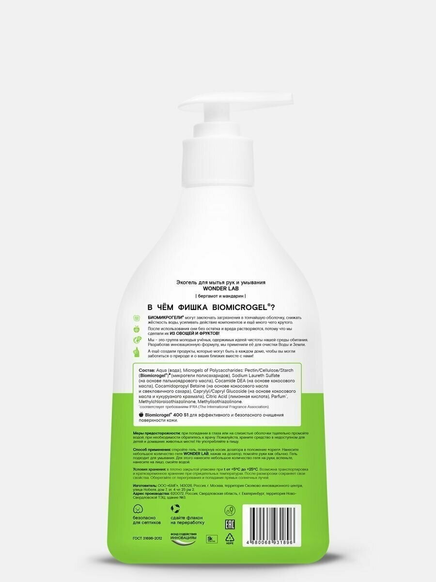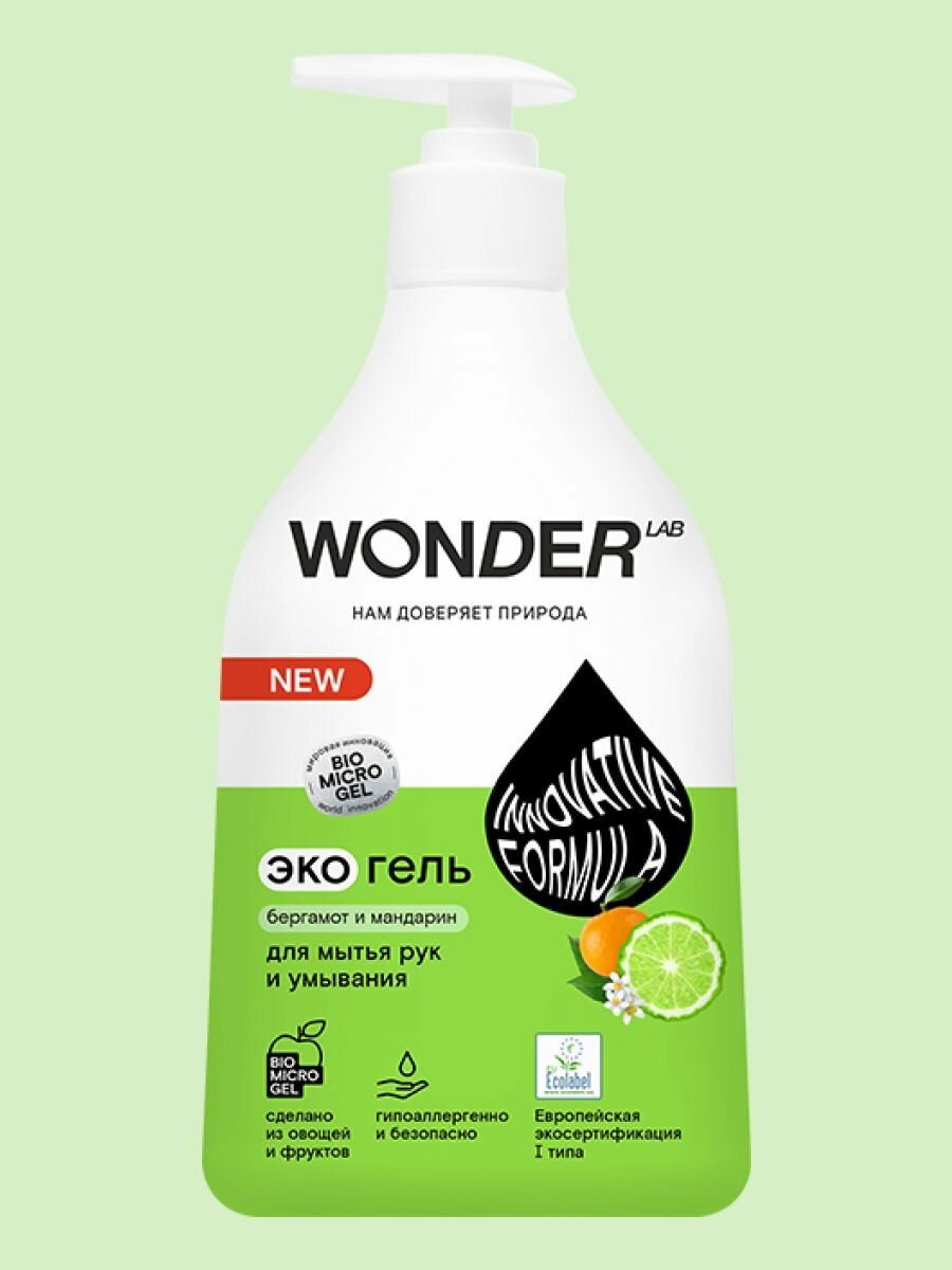 WONDER LAB Экогель для мытья рук и умывания Бергамот и мандарин, 540 мл