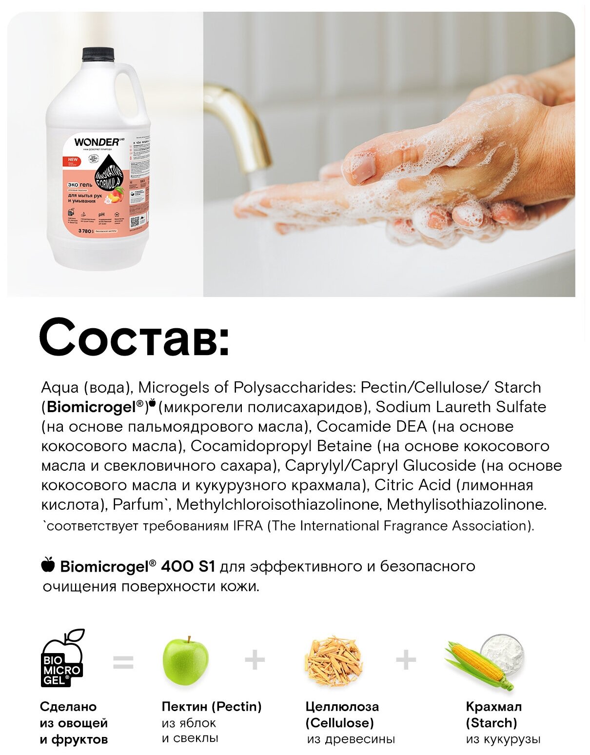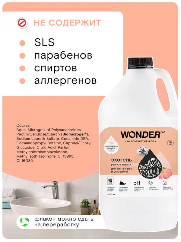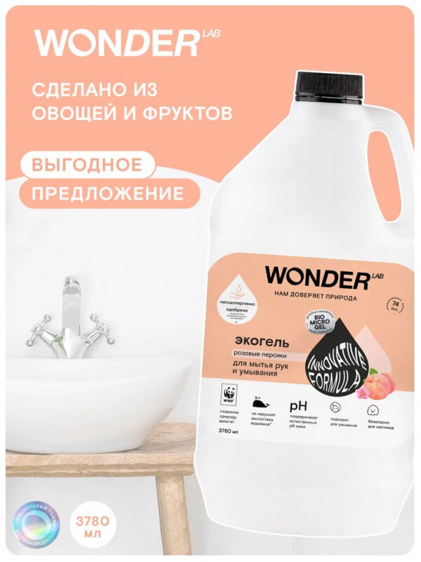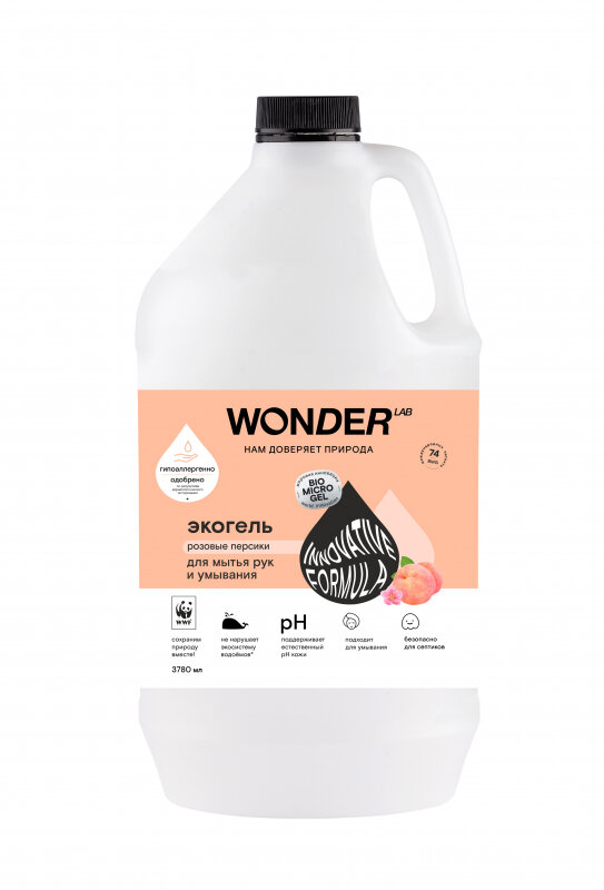 Экогель Wonder Lab для мытья рук и умывания розовые персики, 3.78 л