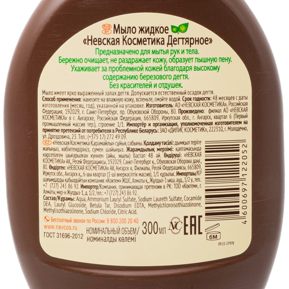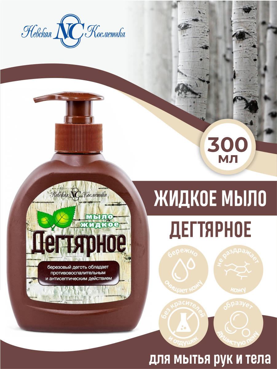 Мыло жидкое для рук и тела Невская Косметика невскaя косметика Дегтярное, 300 мл