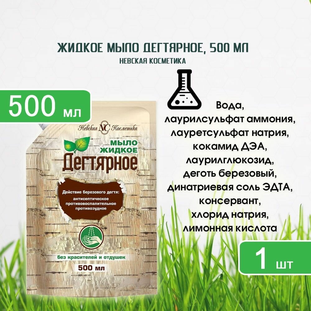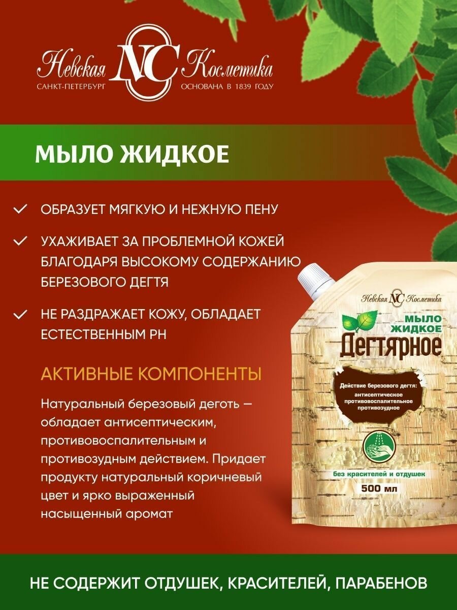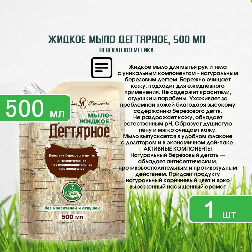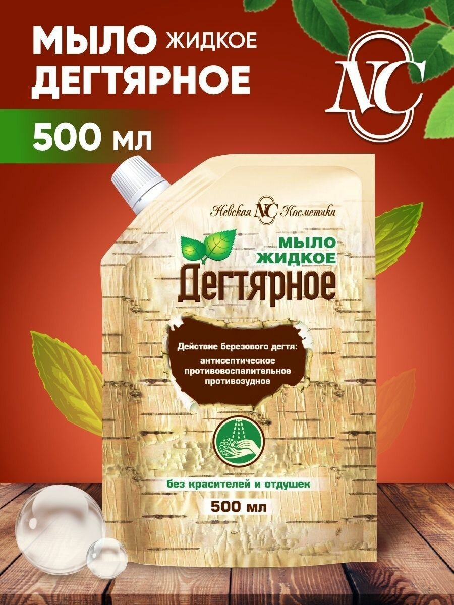 Мыло жидкое для рук и тела Невская Косметика Дегтярное, 500 мл (дой-пак)