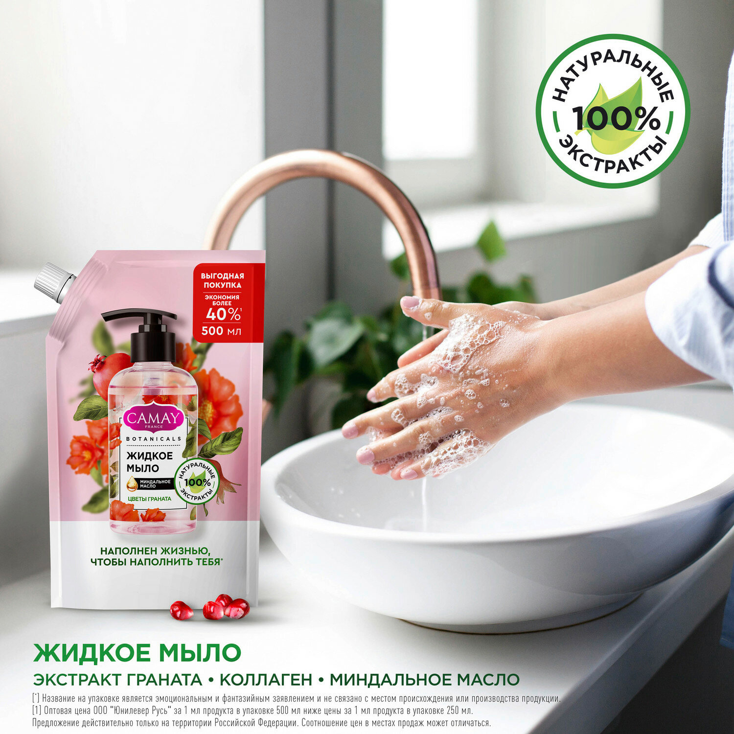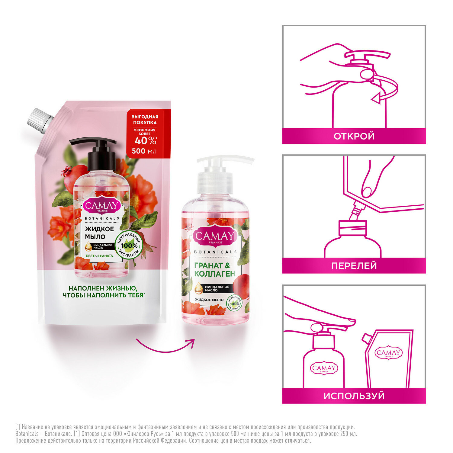 Купить CAMAY BOTANICALS цветы граната жидкое мыло с коллагеном миндальным маслом на 100% натуральной основе 500 мл
