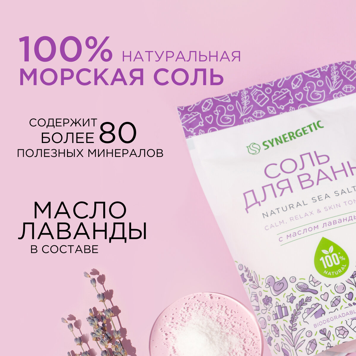 Соль для ванн SYNERGETIC с маслом лаванды интересное: