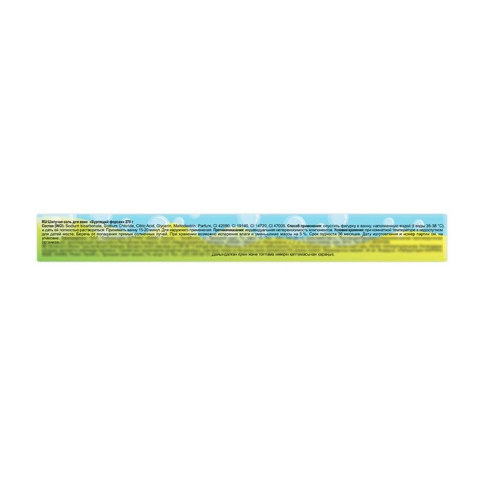 | Способ применения | Наполните ванну теплой водой и равномерно растворите бомбочку. Принимайте ванну 15-20 минут. В гигиенических целях и во избегание окрашивания поверхности ванны рекомендуется почистить поверхность перед процедурой. Для наружного применения. |