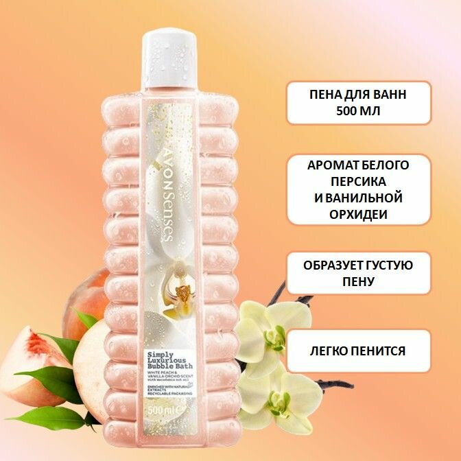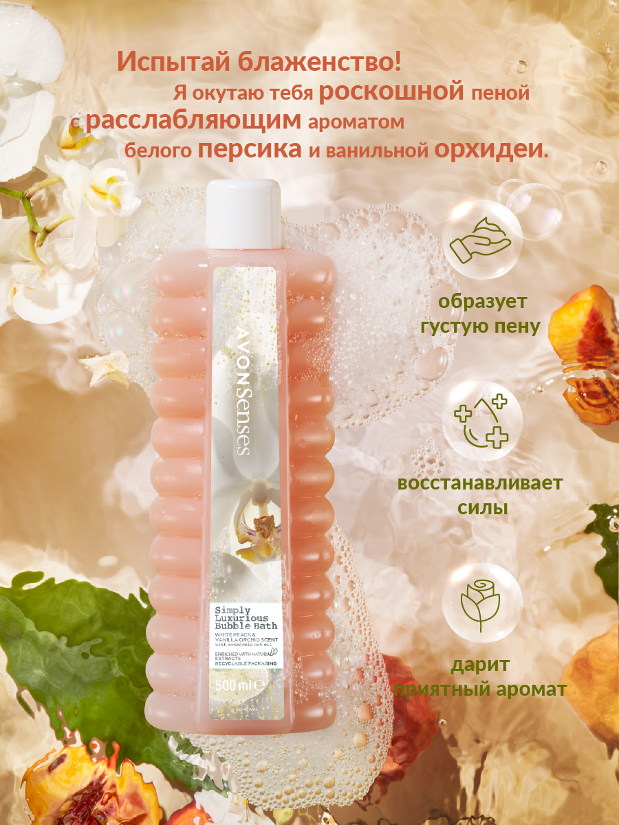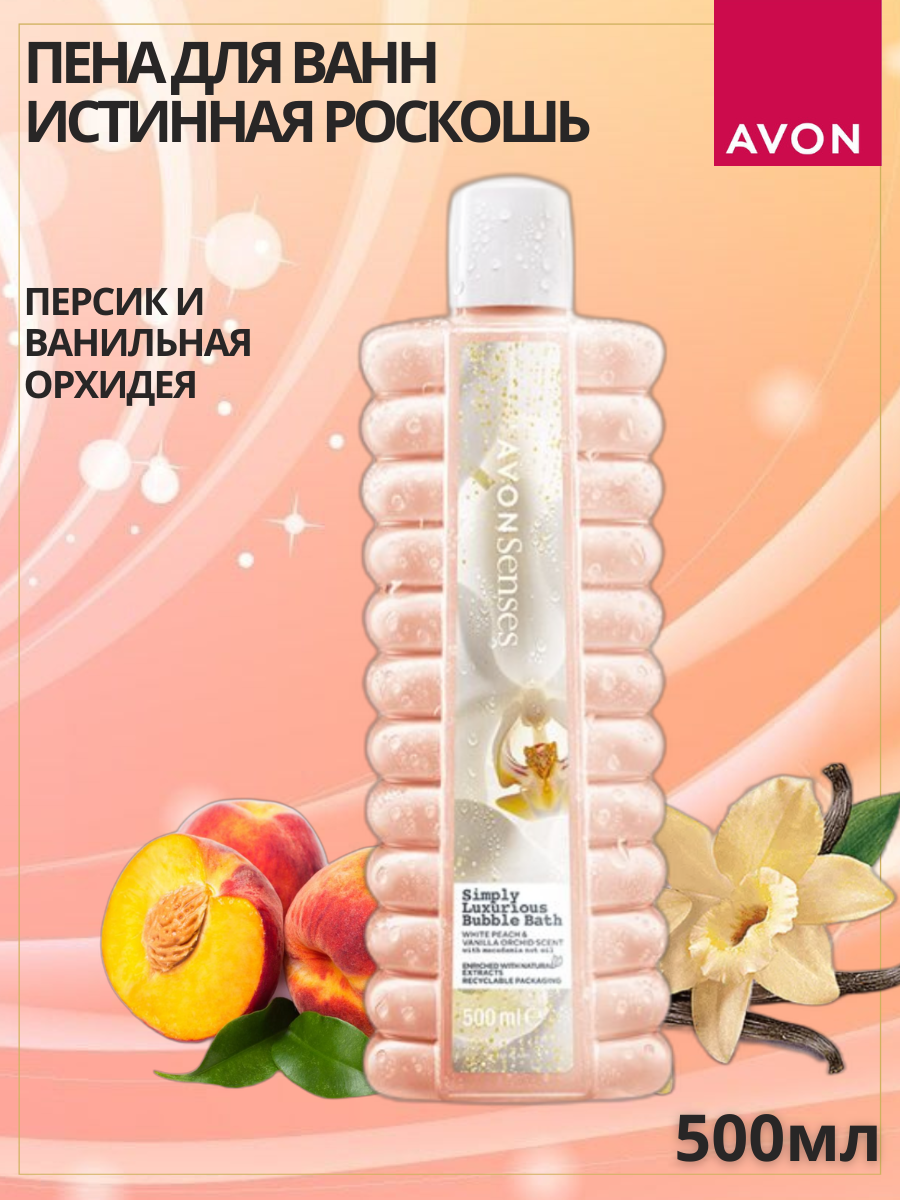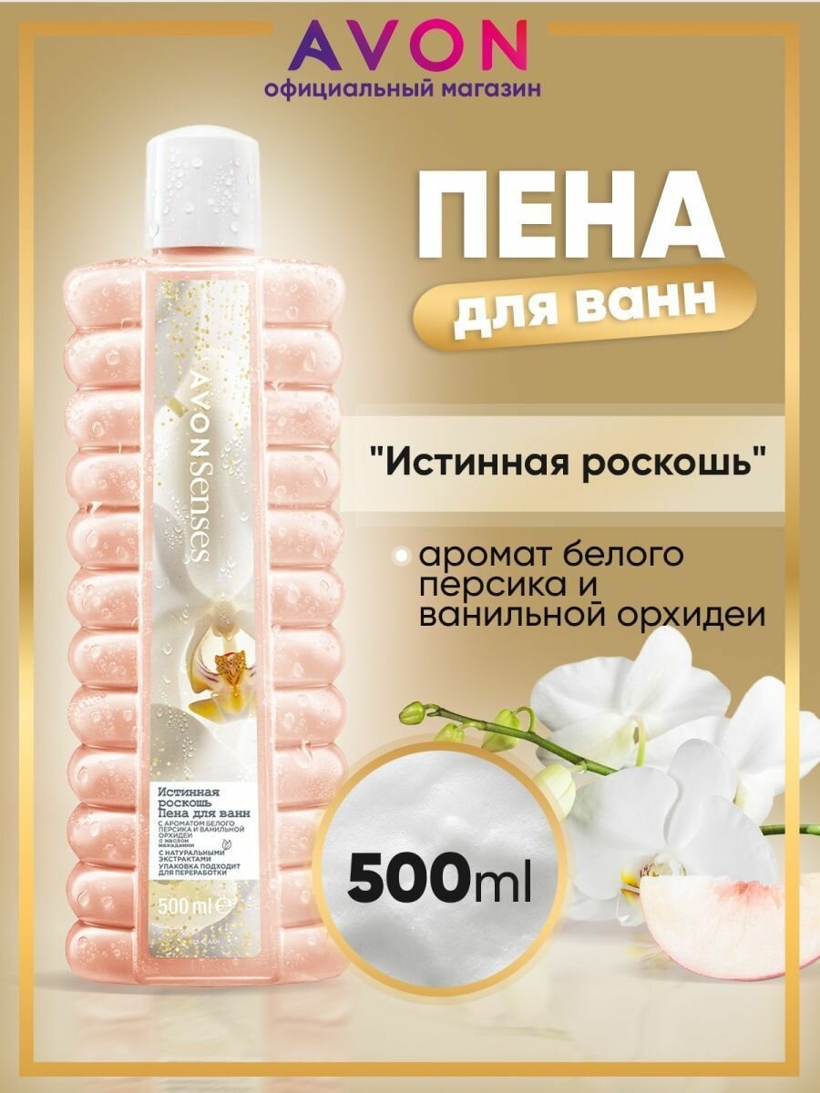 Купить Пена для ванны Истинная роскошь с ароматом белого персика и ванильной орхидеи, эйвон 500 мл