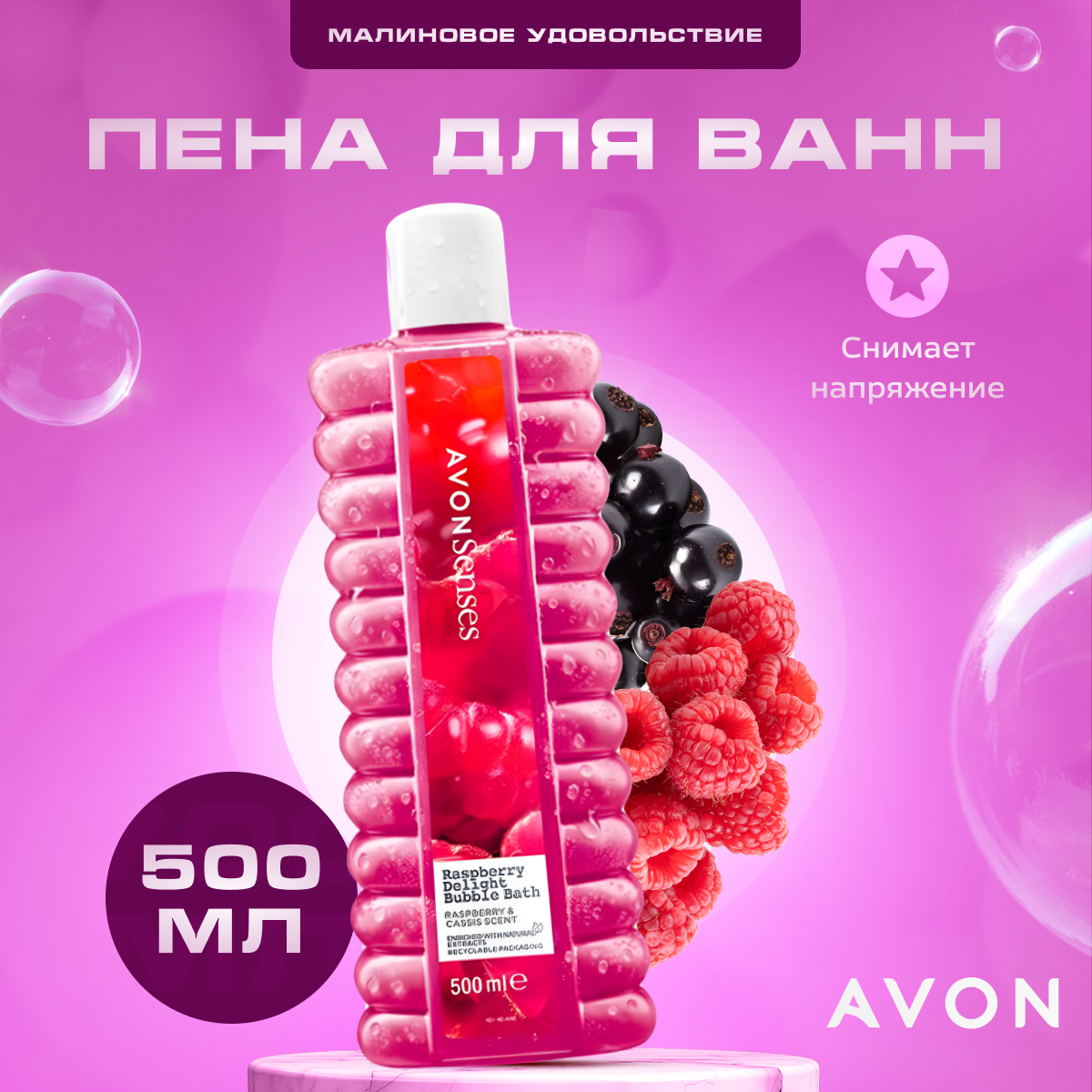 Пена для ванн Avon "Малиновое удовольствие", 500 мл