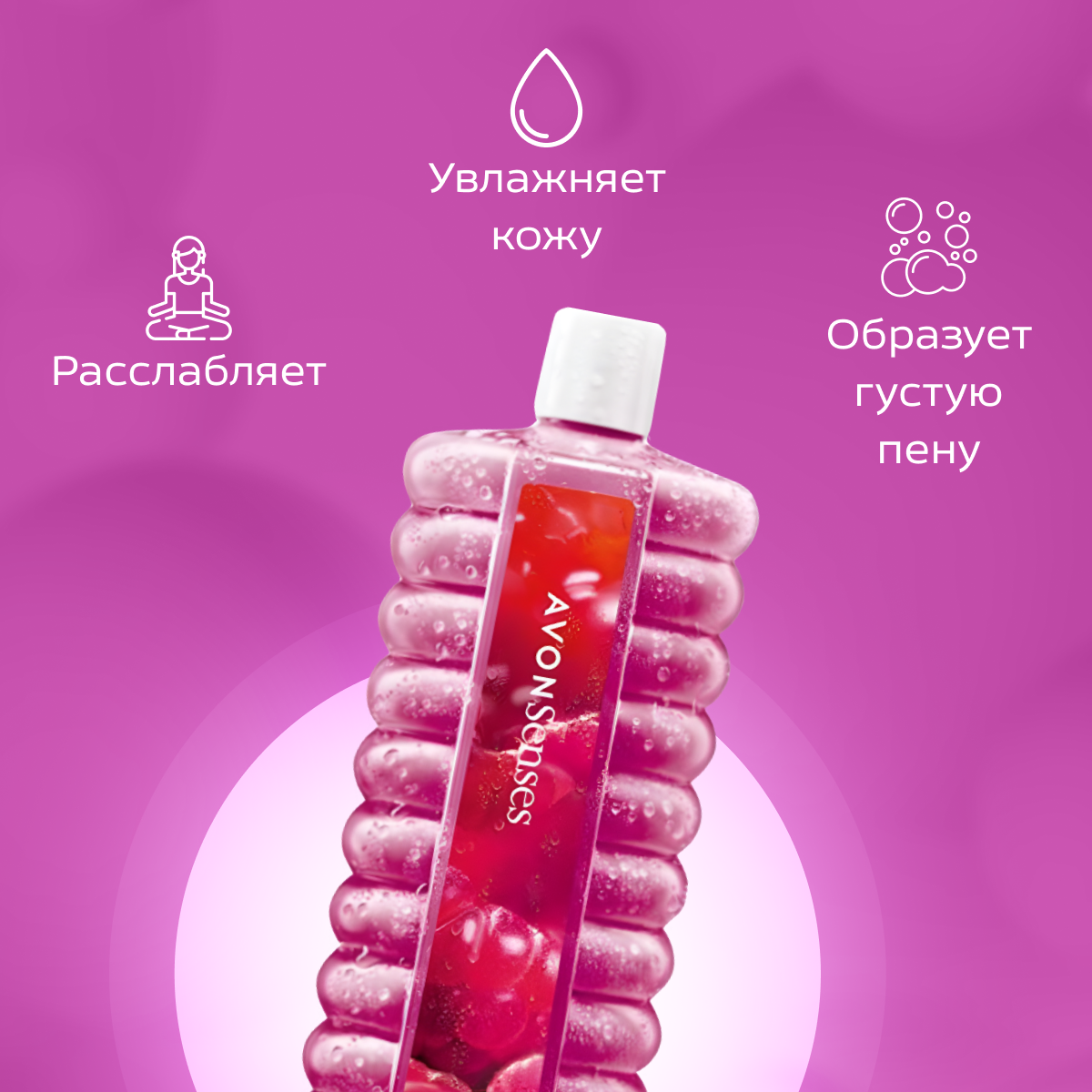 AVON/Эйвон Пена для ванн Senses (Сенсес) "Малиновое удовольствие", 500мл