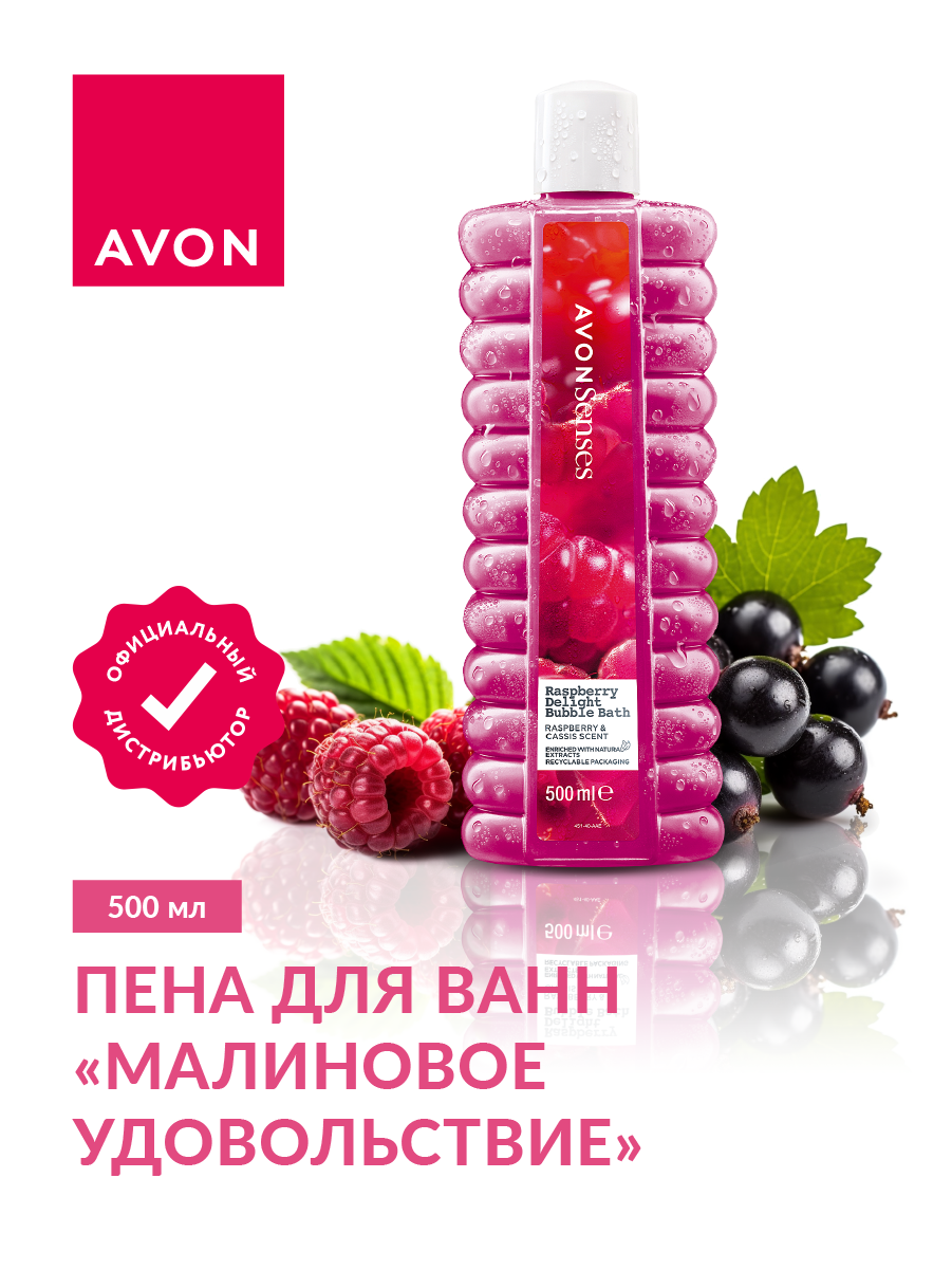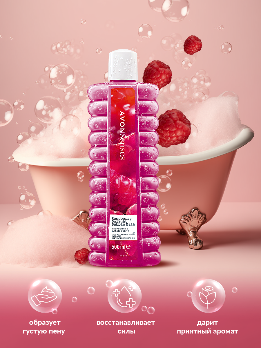 Купить AVON/Эйвон Пена для ванн Senses (Сенсес) "Малиновое удовольствие", 500мл