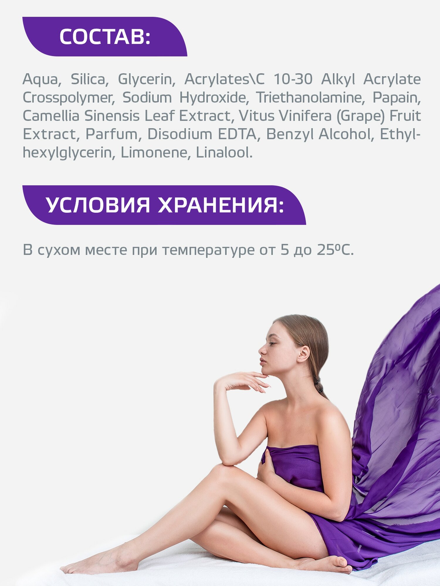| Состав | Aqua, Silica, Glycerin, Acrylates\C 10-30 Alkyl Acrylate Crosspolymer, Sodium Hydroxide, Triethanolamine, Papain, Camellia Sinensis Leaf Extract, Vitus Vinifera (Grape) Fruit Extract, Parfum, Disodium EDTA, Benzyl Alcohol, Ethylhexylglycerin, Limonene, Linalool |