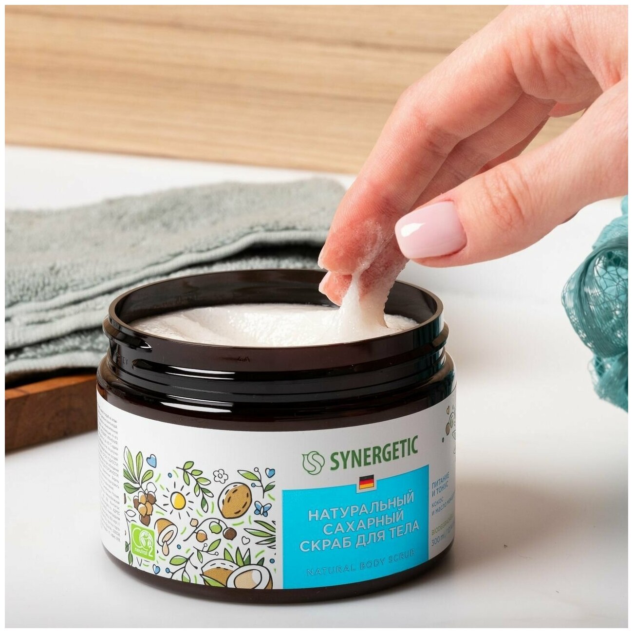 Скраб для тела 300 мл, SYNERGETIC "Кокос и масло макадамии", натуральный, сахарный, 800006