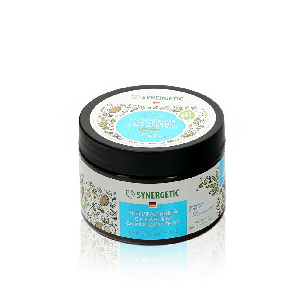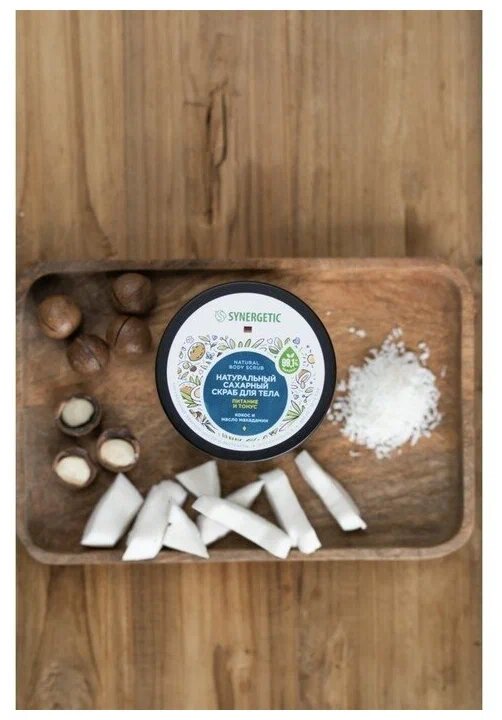 СохранитьСкраб для тела Synergetic 300 мл, "Кокос и масло макадамии", натуральный, сахарный (800006) интересное: